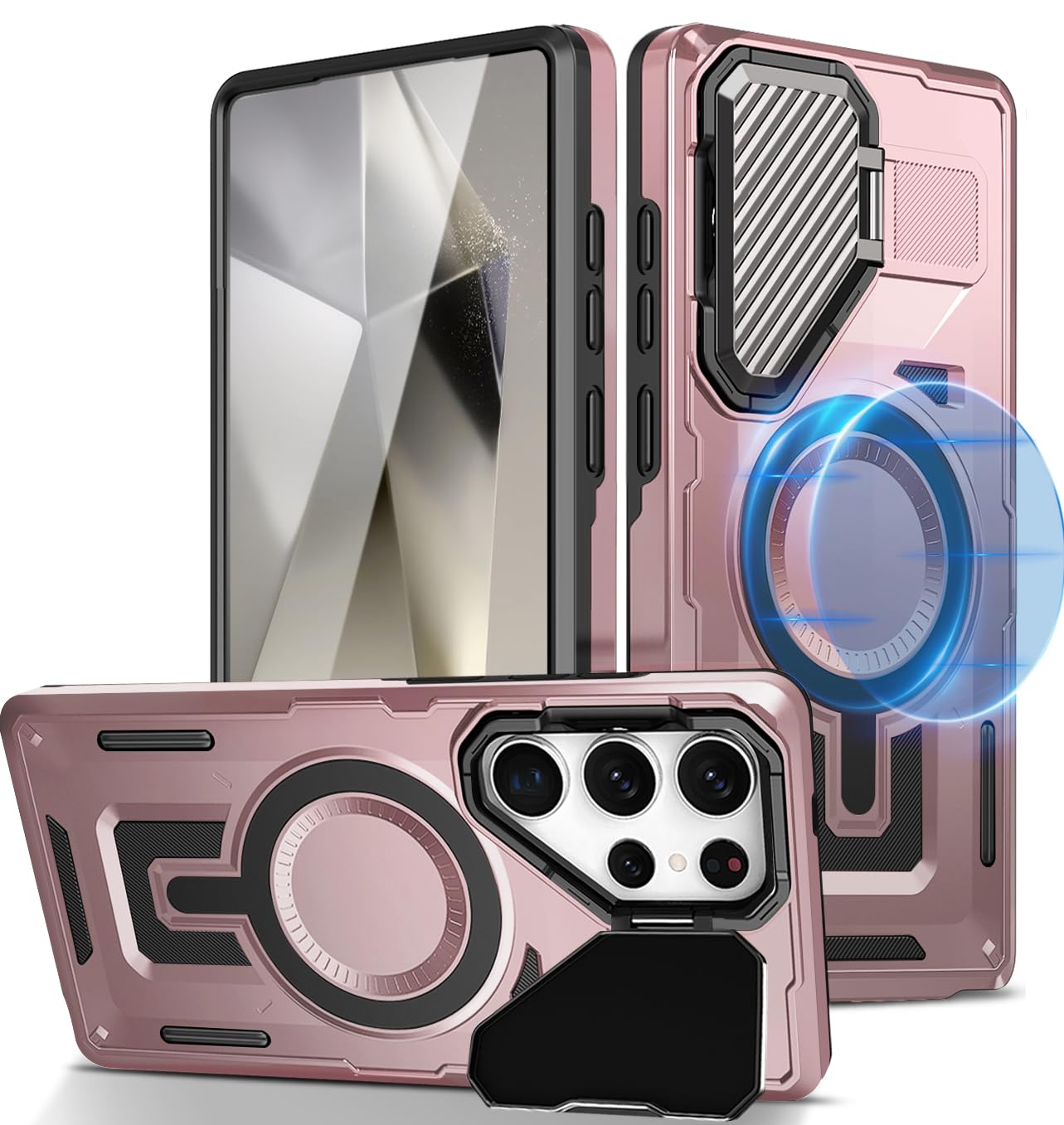 EMMPITU Magnetic Case for Galaxy S25 Ultra with Kickstand, Compatible with MagSafe, [Camera Lens Protector] Heavy Duty Shockproof Military Grade Stand