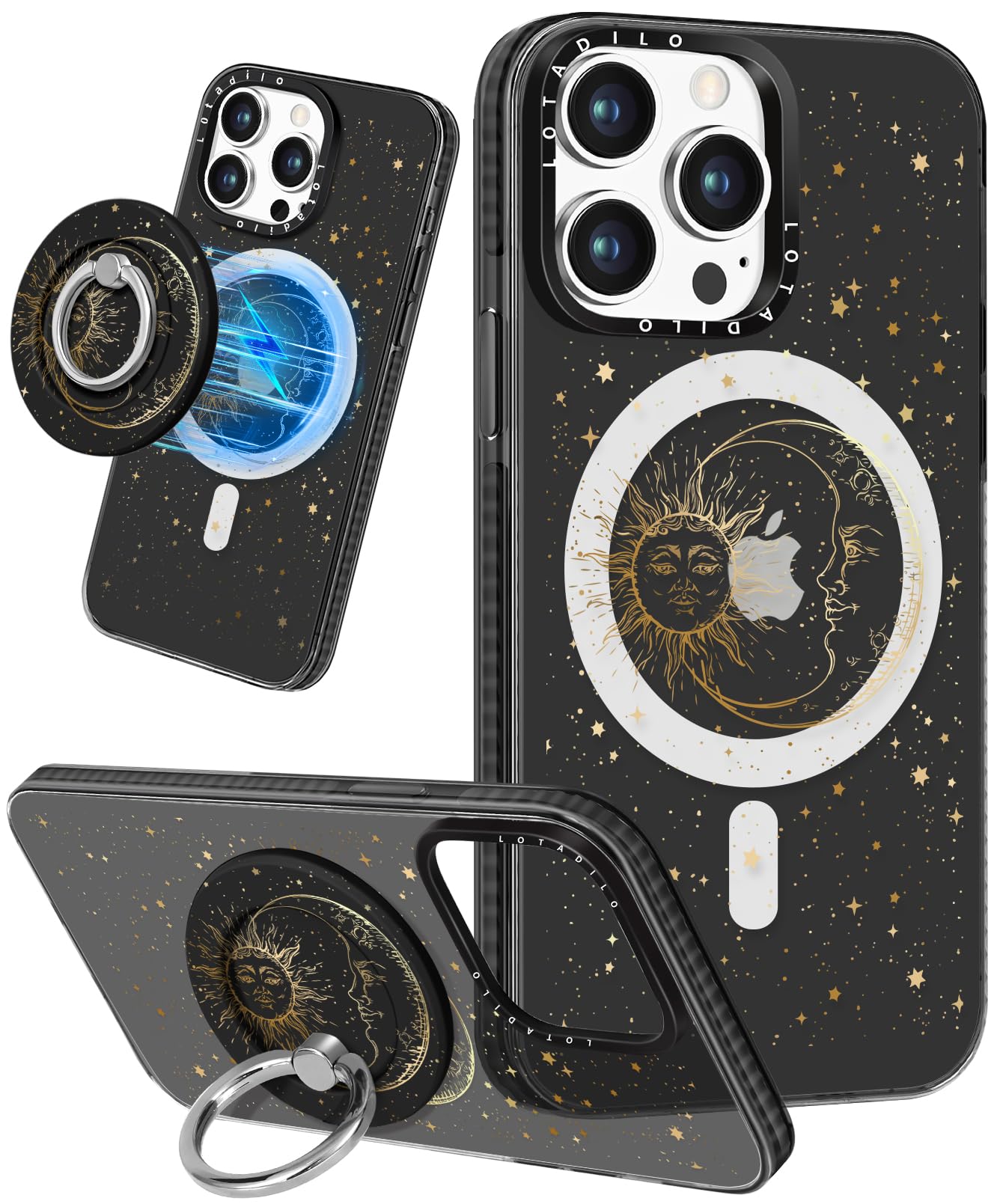 Lotadilo Cute Case for iPhone 14 Pro Max for Women Girls - Funny Sun Moon Design Compatible with Magsafe Magnetic Ring Holder Kickstand Fashion TPU