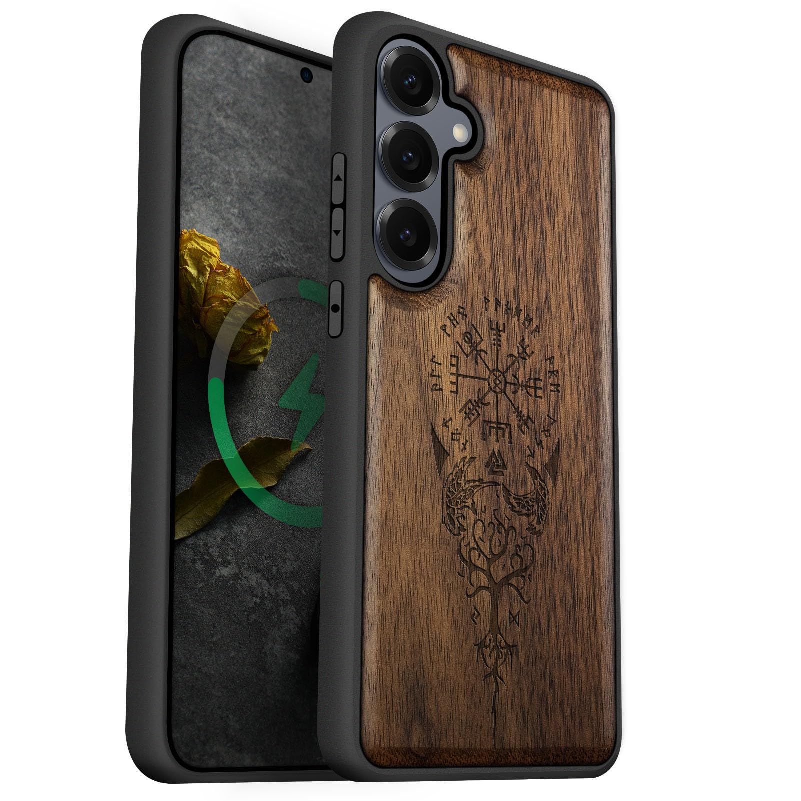 Carveit Magnetic Wooden Case for Galaxy S25+ Samsung S25 Plus Case, TPU Shockproof Cover & Wood Engraved, Compatible with MagSafe Wireless Chargers (