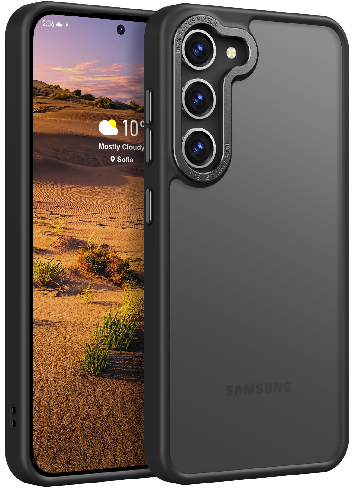 Translucent Matte Back: Meticulously designed for the Galaxy S23 Plus, snap your phone in and go. The frosted texture and translucent hard PC back give this Samsung S23 Plus case a unique and sleek look and keep the phone's logo visible, allowing your phone to be placed freely and away from scratche