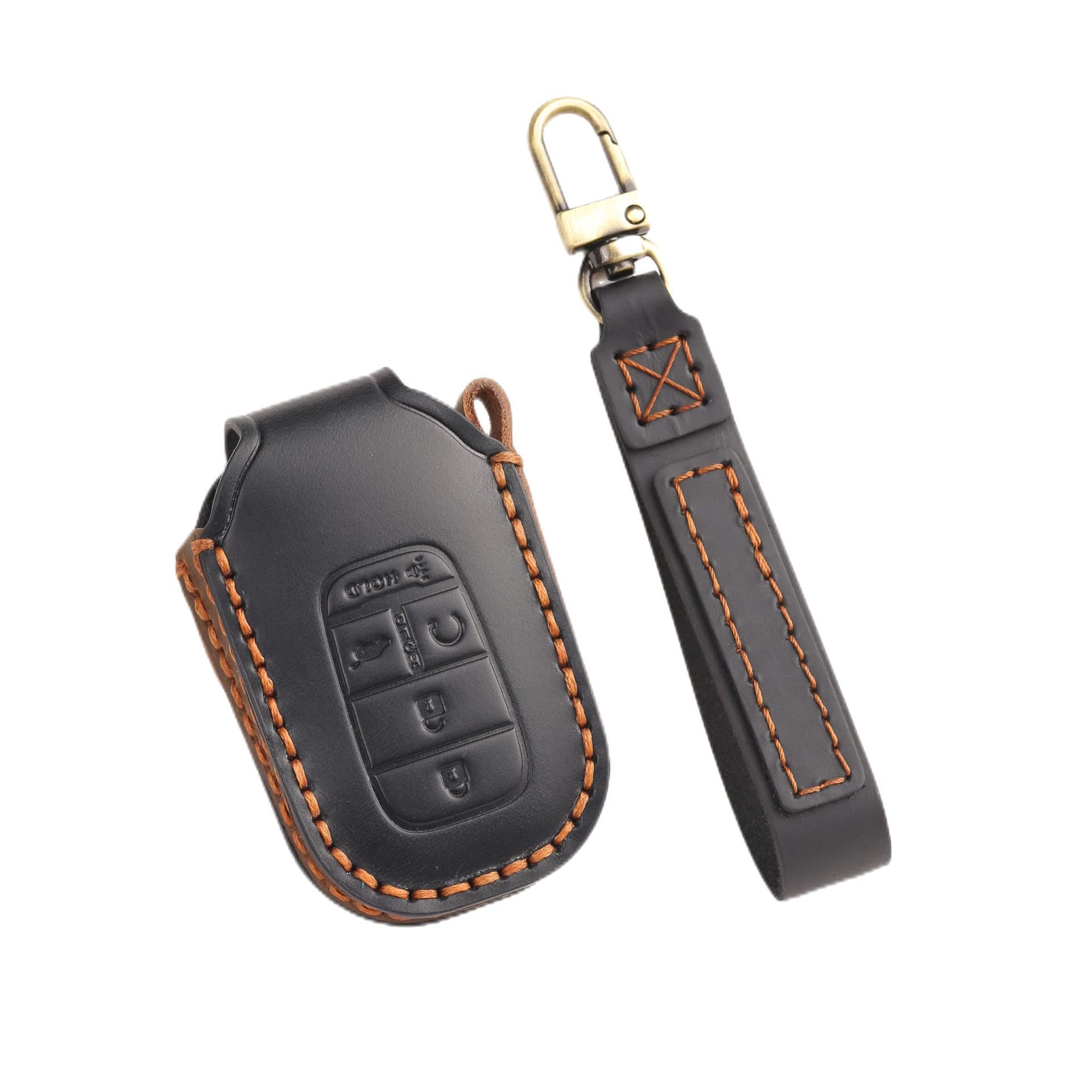 Hontumax Genuine Leather 5-Button Key Fob Cover Case for Honda Civic Accord Pilot CRV Pilot HRV 2022 2023 2024 2025 (Black)