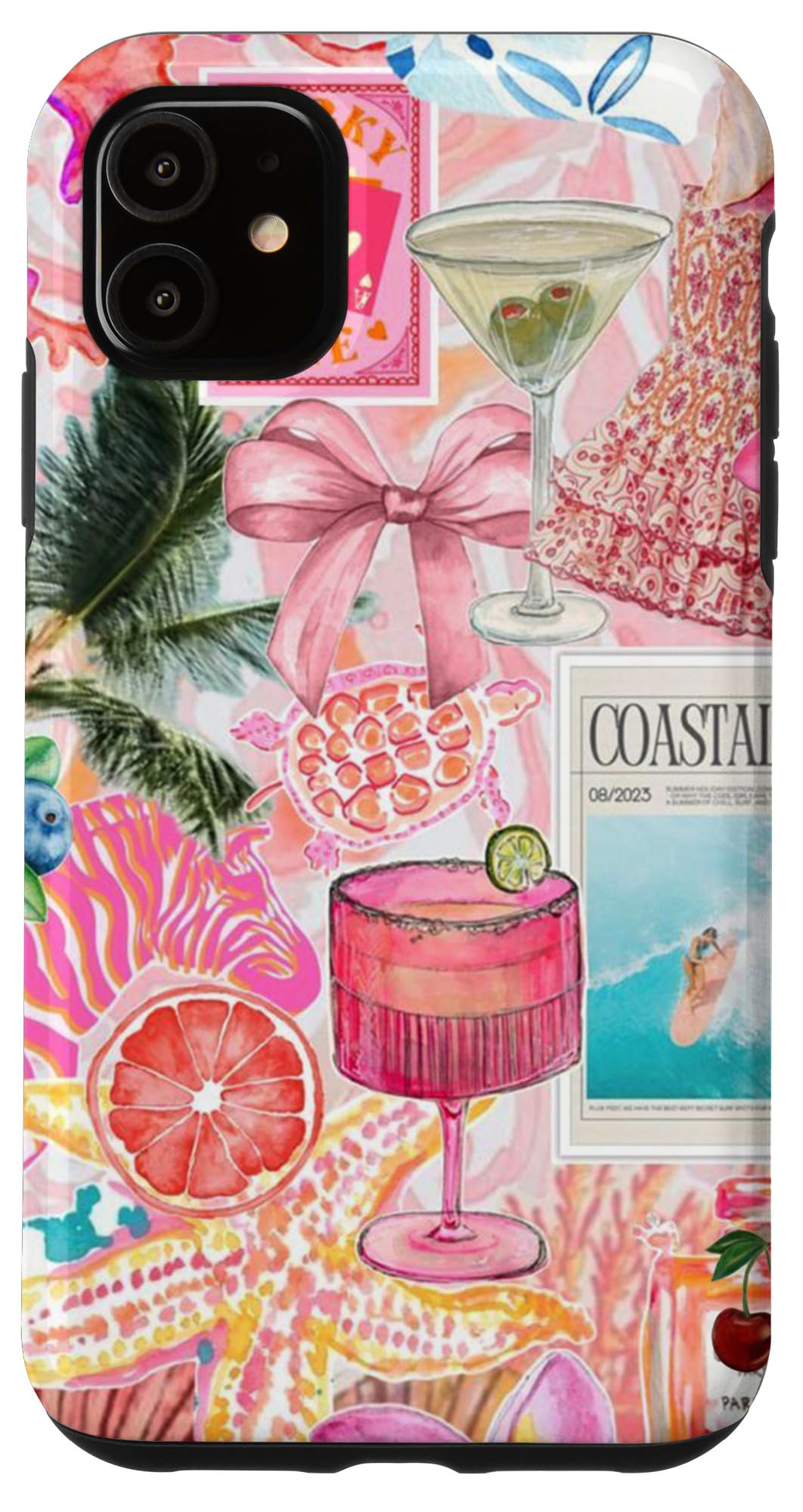 Summer Coastal Coquette Cocktail Palm Tree & Pink Bow Case for iPhone 11