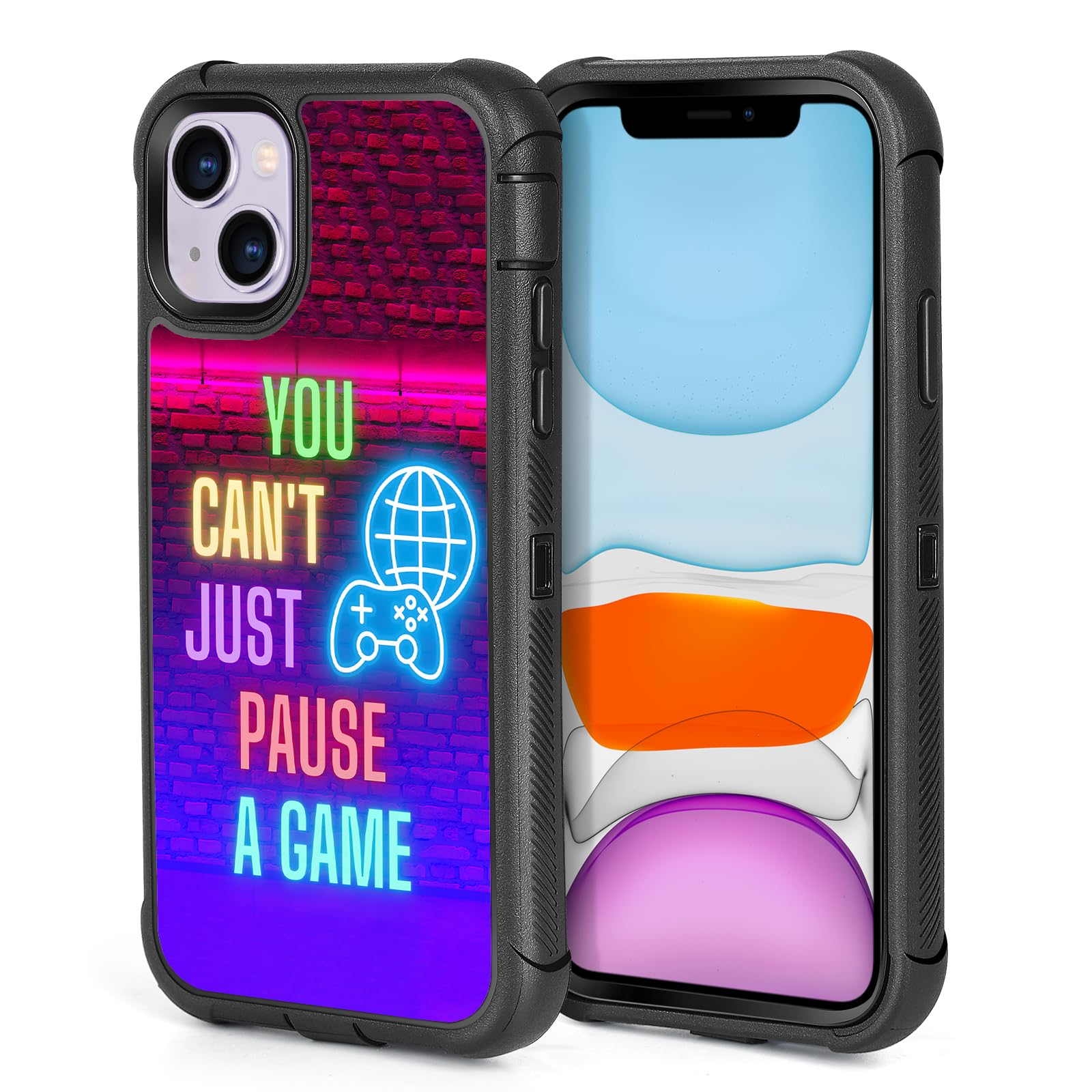 XWMHHP Compatible with iPhone 14/13 Case Funny You Can't Just Pause A Game Design for Boys Kids Teens, 3-Layer Rugged Shockproof Anti-Slip Hard Bumper