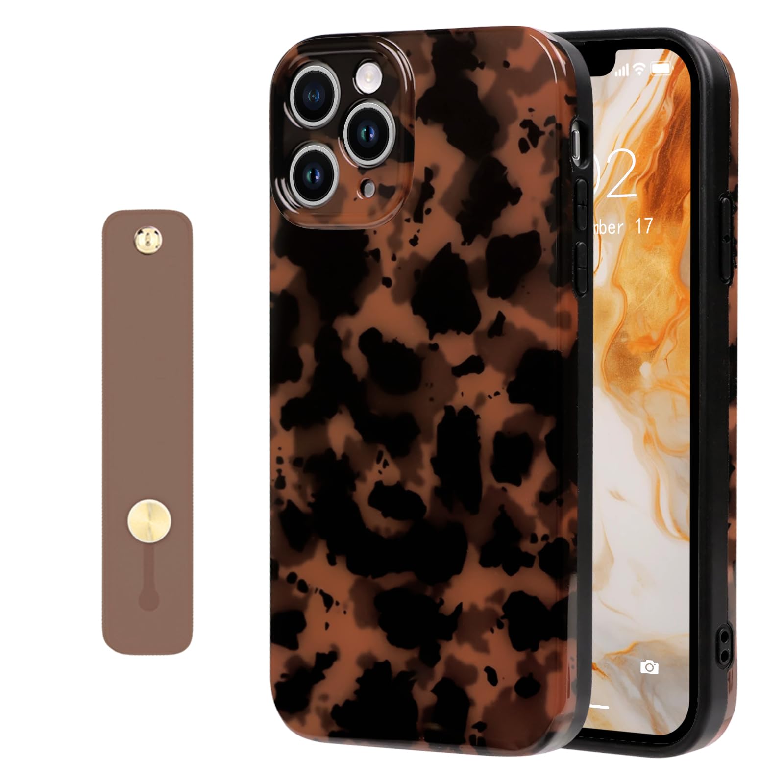NITITOP Compatible with iPhone 11 Pro Max Case with Wrist Strap Cute Stylish Leopard Aesthetic Tortoise Amber Design for Women Girls Men Soft TPU