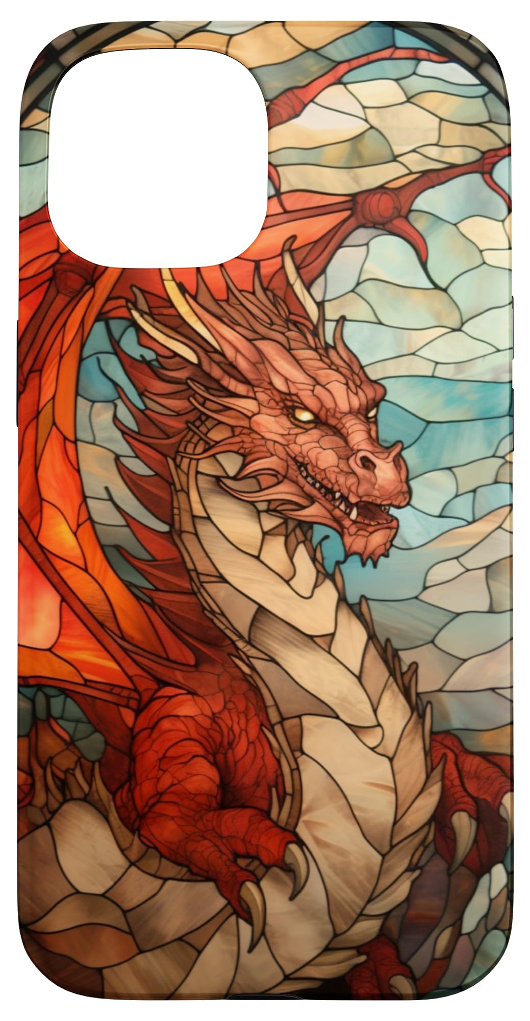 Medieval Dragon Phone Case design. Phone Covers & Phone Cases - Stained Glass Window Art Of Red Colored Dragon, Church Aesthetic, Medieval Art. Two-part protective case made from a premium scratch-resistant polycarbonate shell and shock absorbent TPU liner protects against drops Printed in the USA E