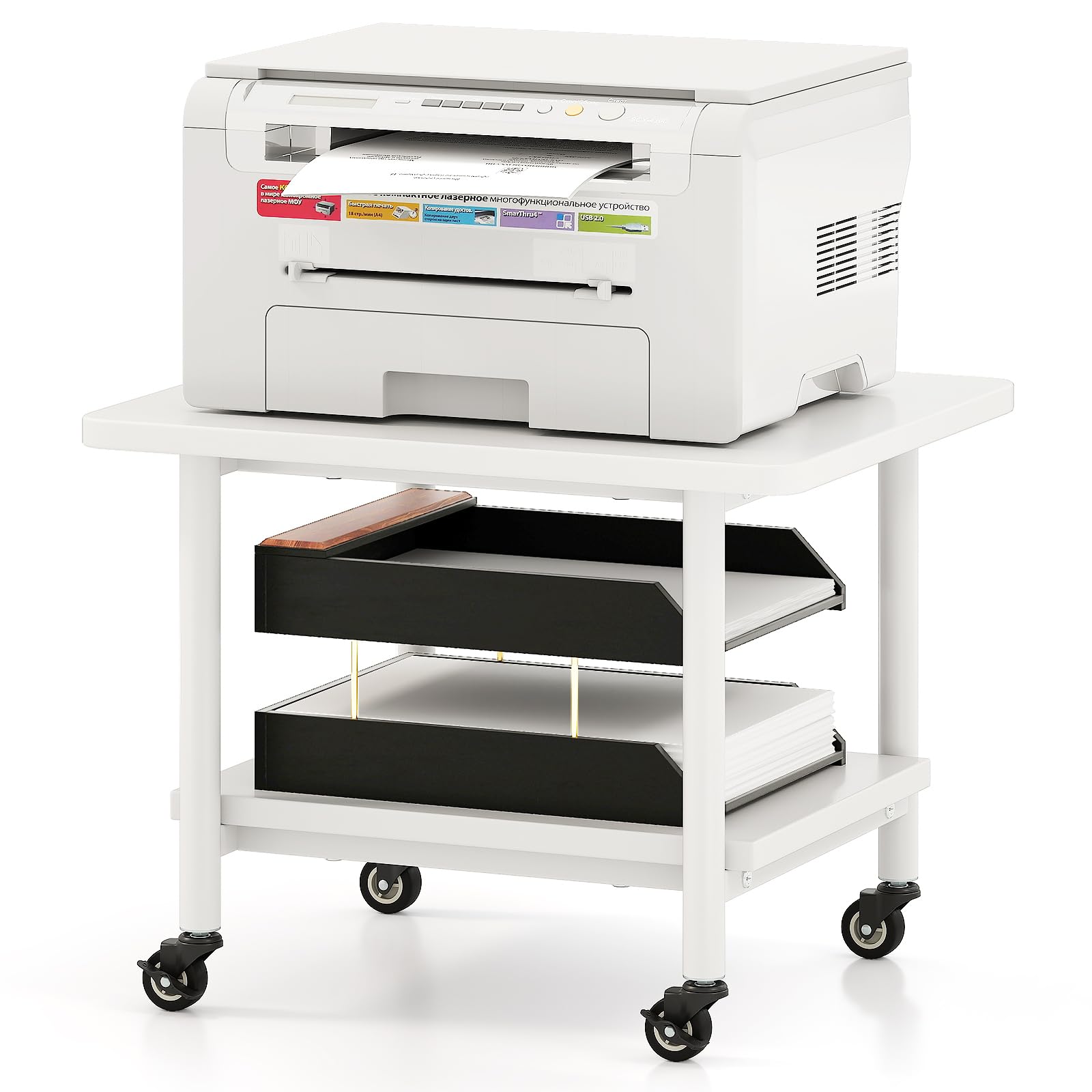GOFLAME Under Desk Printer Stand, 2-Tier Industrial Mobile Printer Table with Storage Shelf, Metal Frame, Rolling Printer Cart Holder Storage Rack