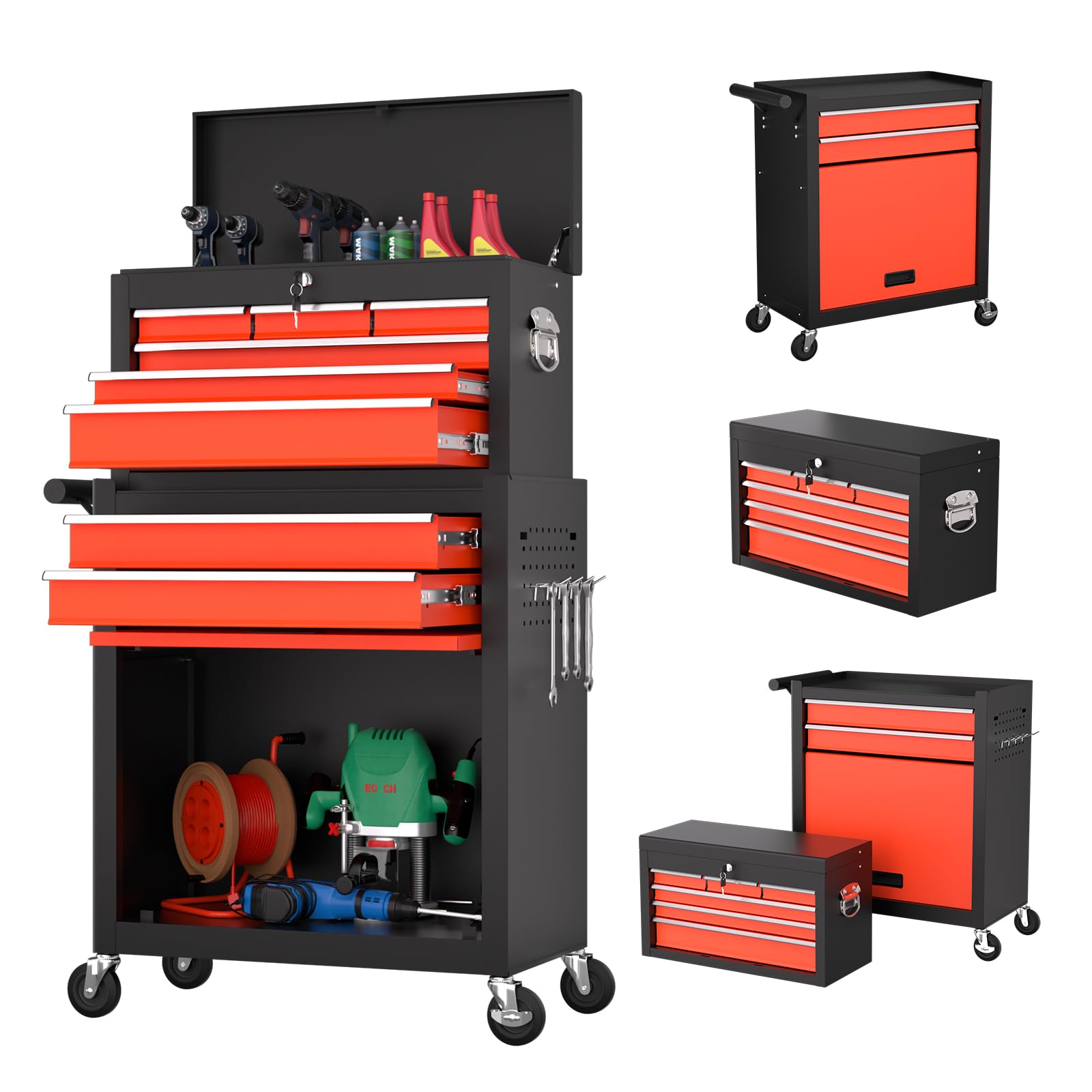 8-Drawers Large Tool Chest, Detachable Top Tool Box, Locking Mechanical tool box with wheels, Large Rolling Tool Box Organizer for Garage, Workshop,