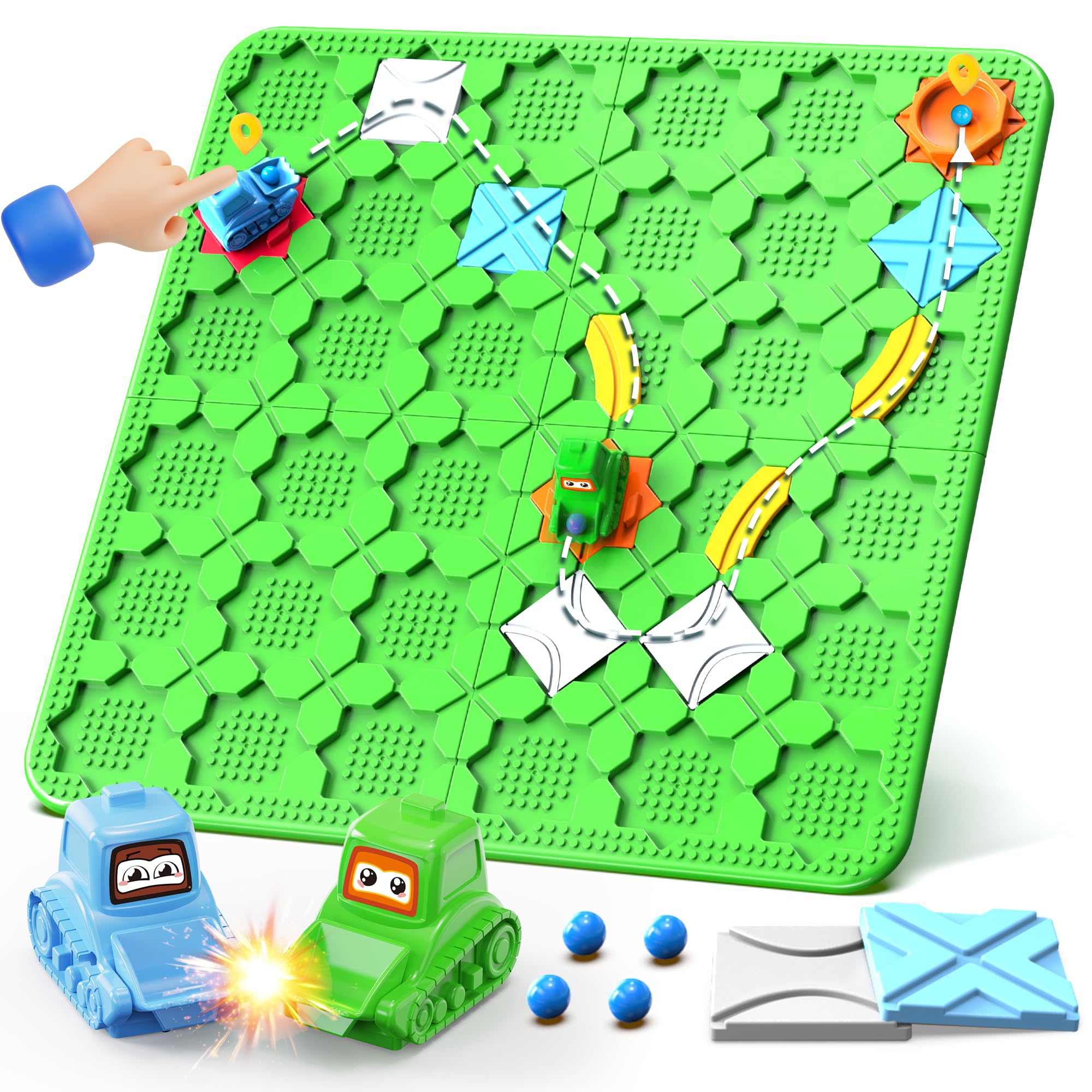 Developing Thinking Skills: Design a route on the baseboard use different types of pieces to build a trail and ensure it connects from the starting point to the end. Guide the car along this trail and successfully transport the marble to the destination Larger Baseboard & Block Compatibility:The u