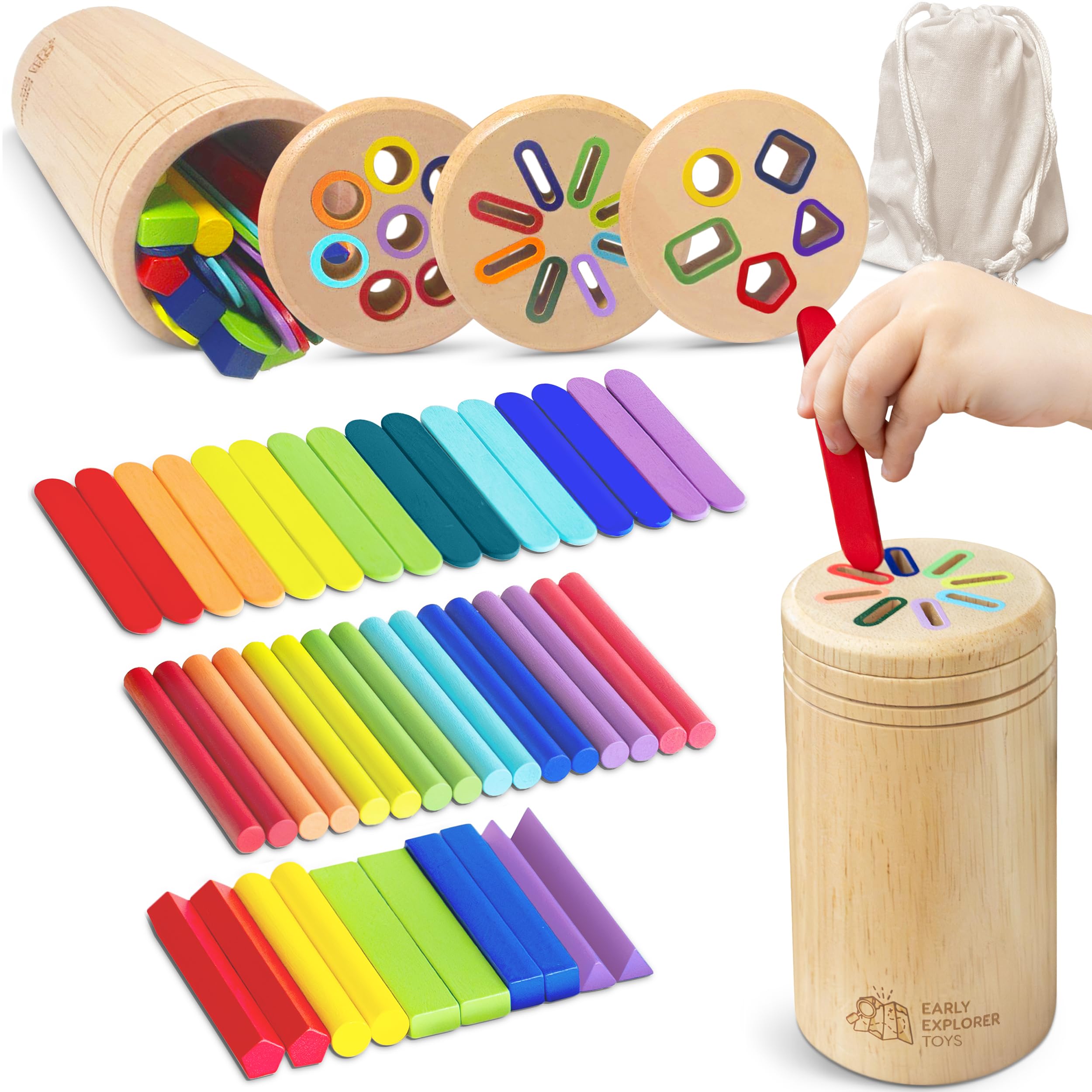 Wooden Montessori Baby Toddler Toys: 3 in 1 Learning Fine Motor Skills Juguetes, Educational Color Sorting Fidget Sensory Toys for Toddlers Boys Girls