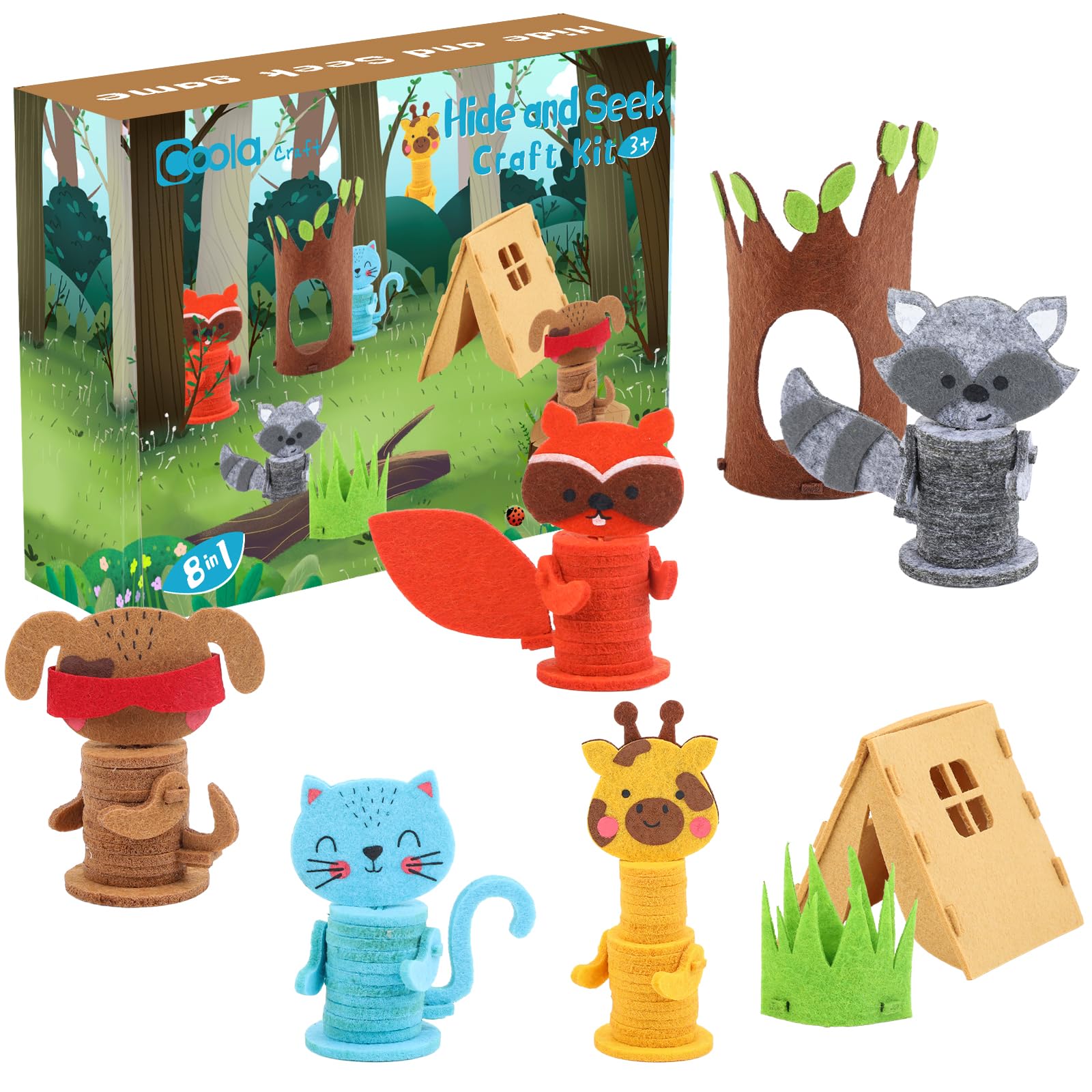 Coola Animal Hide & Seek Craft Kit - 8Pcs Preschool Beginner's DIY Toy Set for Kids Ages 3-6, Includes Cat, Dog, Giraffe, Raccoon, for Boys & Girls 4-