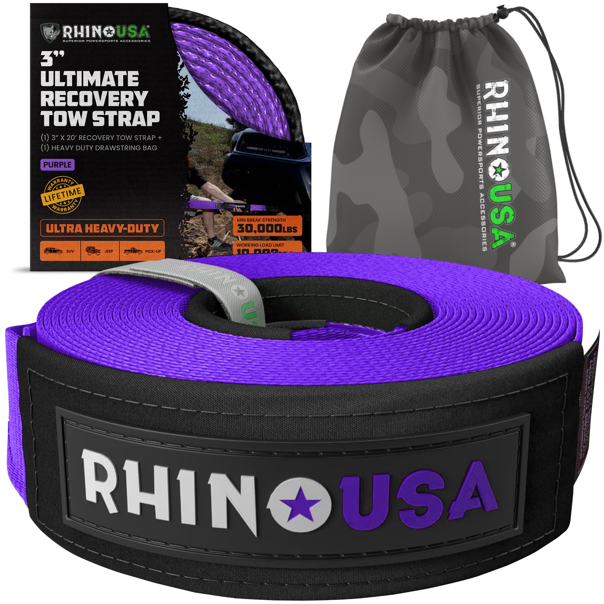 Rhino USA Recovery Tow Strap (3" x 20') - 31,518lb Break Strength - Emergency Recovery Strap Tow Rope for Truck, UTV, ATV & More - Heavy Duty Towing