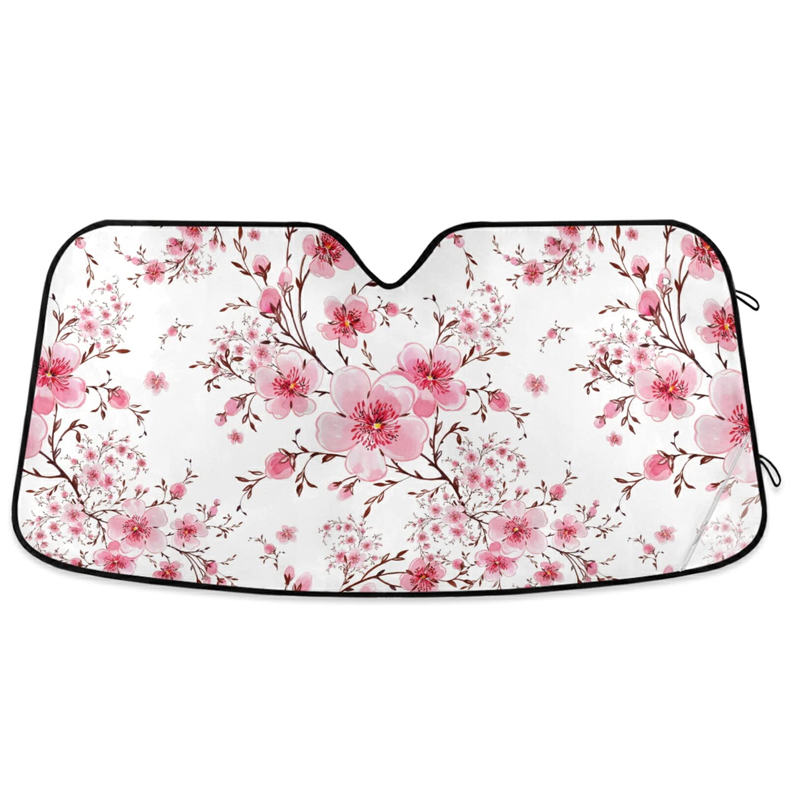 Oarencol Cherry Blossom Car Windshield Sun Shade Foldable Pink Florals UV Ray Sun Visor Protector Sunshade to Keep Your Vehicle Cool (55" x 27.6")