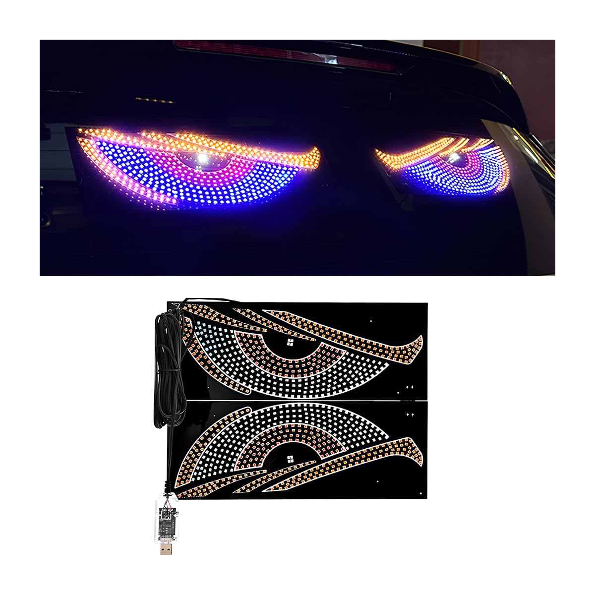 FALVFUN 2PCS Car Devil Eyes Light, 11.8in x 4.72in Dynamic Flex Vehicle Windshield Digital LED Sign Display, Flexible Auto Exterior Decor Lamp