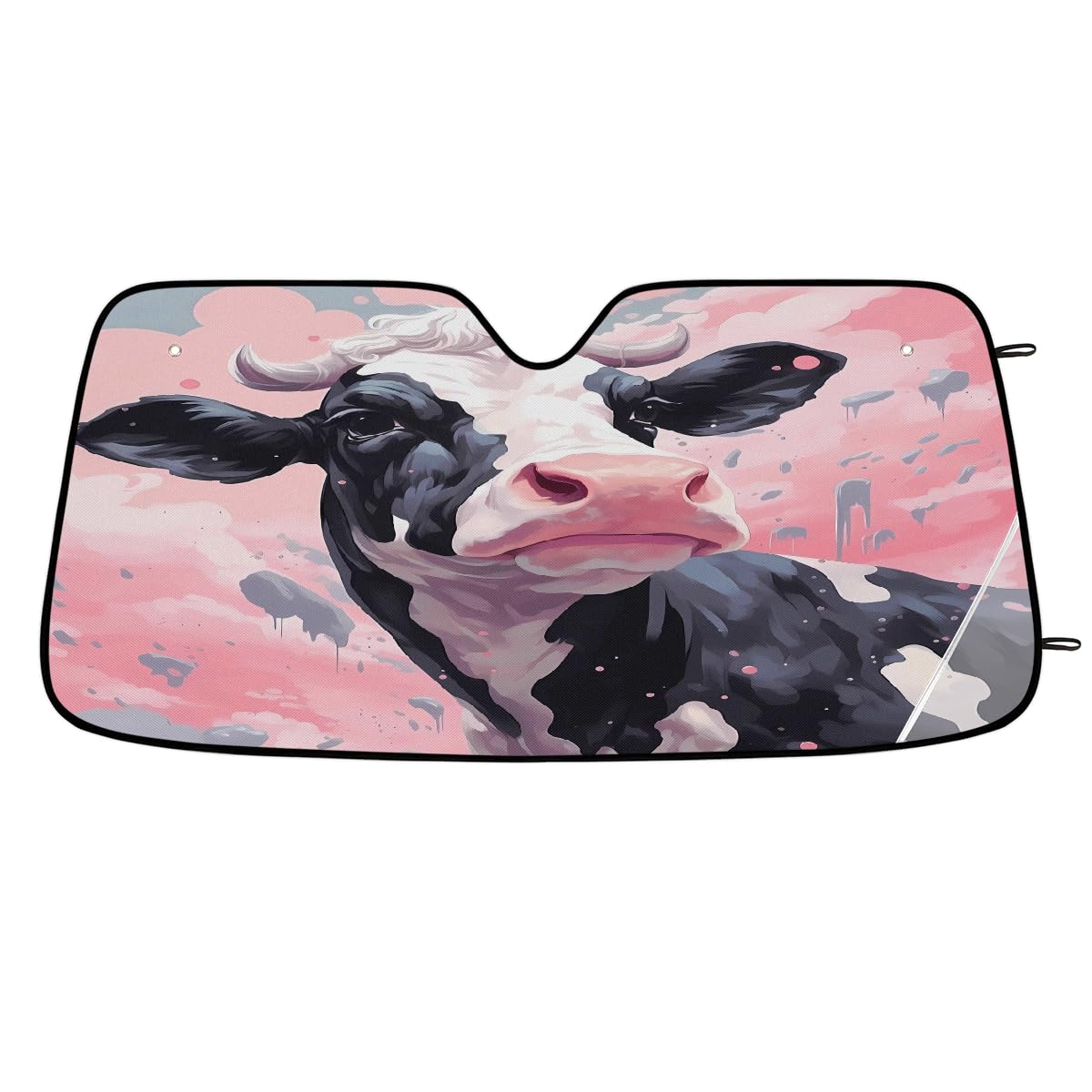 Yeahhhlife Car Sun Shade Windshield Cover, Portable Foldable Auto Sun Visor for Front Window, Fits Hatchbacks, SUVs, Trucks, Cow Print Texture