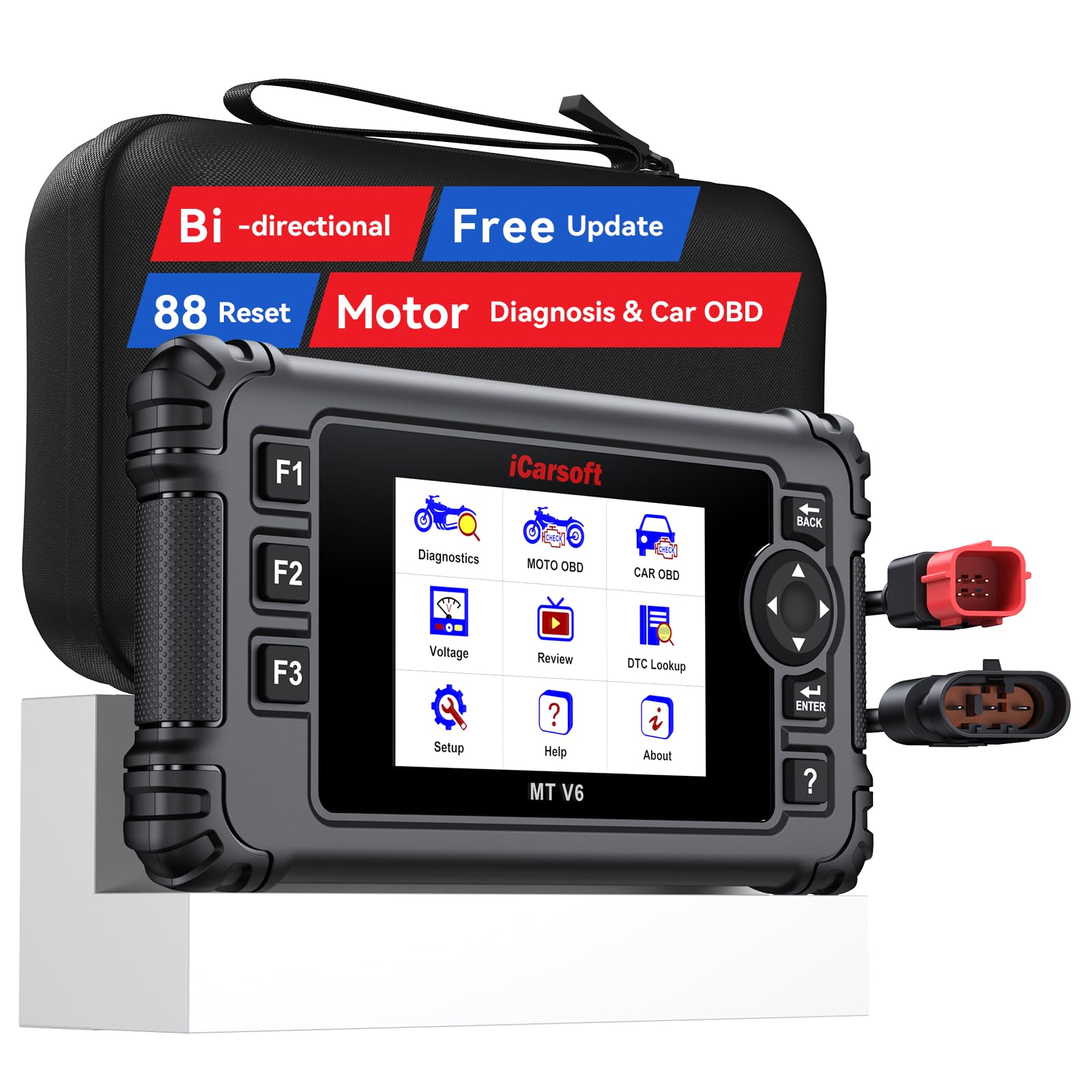 iCarsoft MT V6 Motorcycle OBD2 Scanner for Aprilia, Full-System Motorcycle Bidirectional Diagnostic Tool with 88 Resets & 122 Active Test, Battery