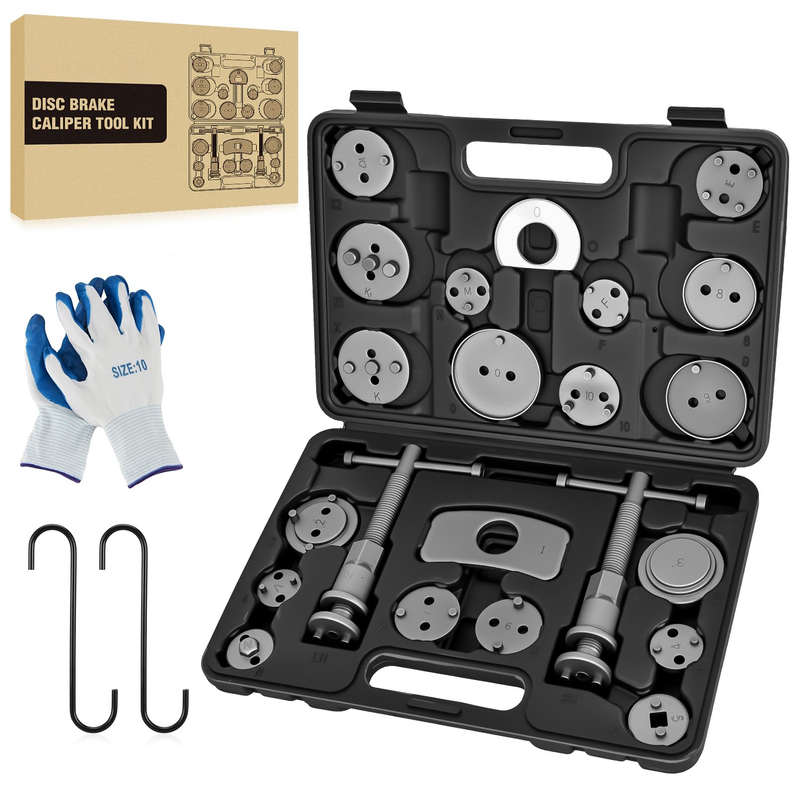 GOOACC 22pcs Disc Brake Caliper Compression Tool Set, Caliper Piston Rewind Compressor Tool with Brake Caliper Hangers & Gloves for Brake Pad
