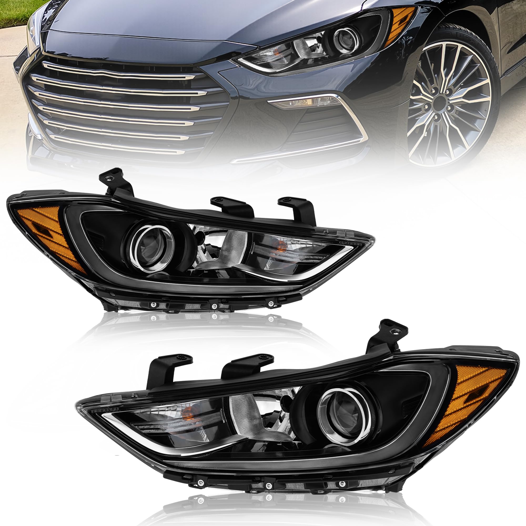 KUIPERAUTO Headlight Assembly Compatible with 2017-2018 Hyundai Elantra Black Housing/Clear lens/Amber Reflector 92101F3000 92102F3000 Driver and