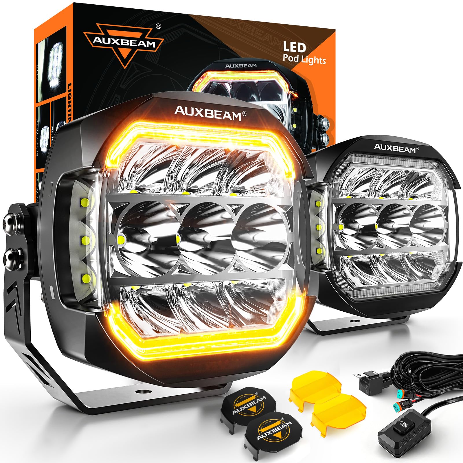 Auxbeam XP-Ultra Series 5" Offroad LED Pod Lights, 270° Side Shooter, Amber White DRL & Turn Signal, 174W 20400LM Spot Flood Combo, Driving Fog Light