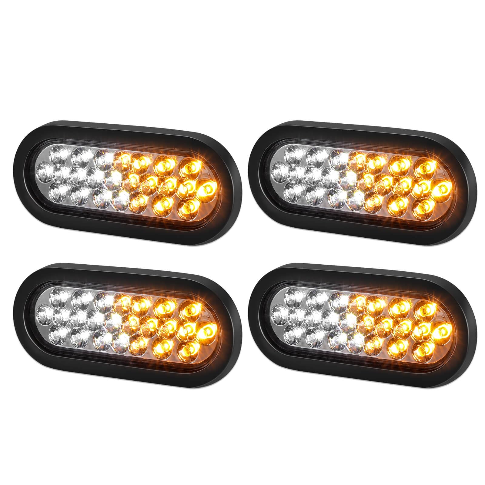 XtraGlow 6.3" Oval Amber/White Strobe Lights 24LEDs Recessed with Quad Flash Patterns for Trailer Truck Towing Lights IP67 Waterproof with 3-prong