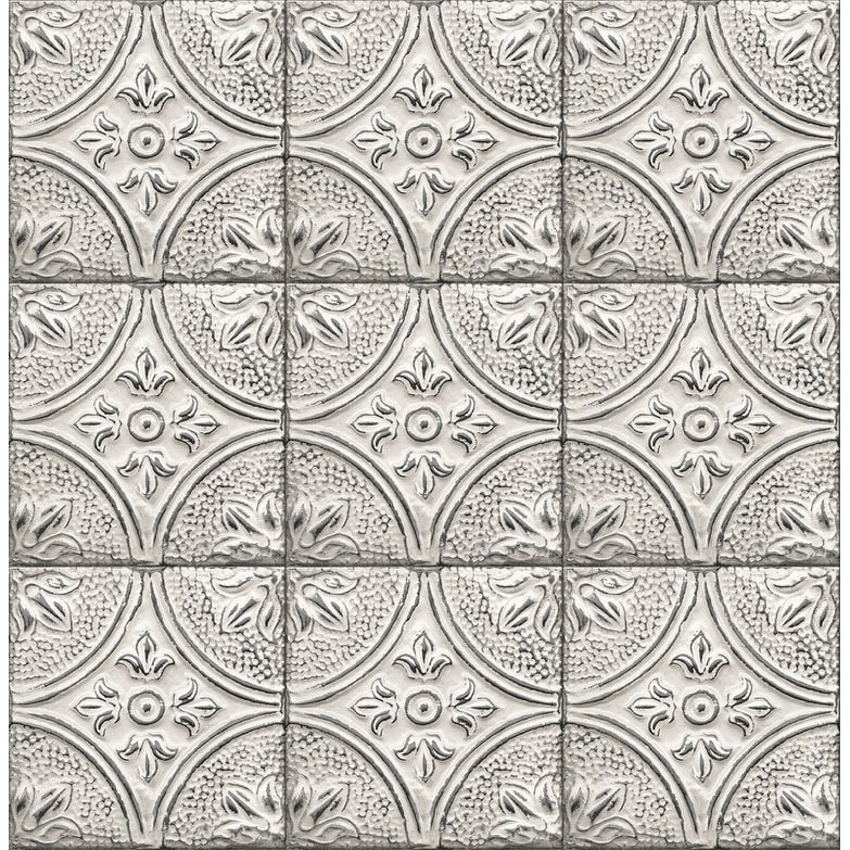 Brewster Houston White Tin Tile Wallpaper - 20.5in x 396in x 0.025in