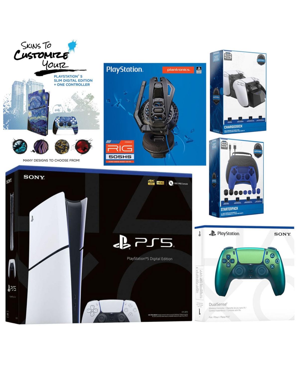 Sony Playstation 5 Pro Bundle with ExtraController, Plantronics Headset, Pro Gamer Kit, Trigger Kit and MightySkins Decal Voucher Plus 2 Year Cps Exte
