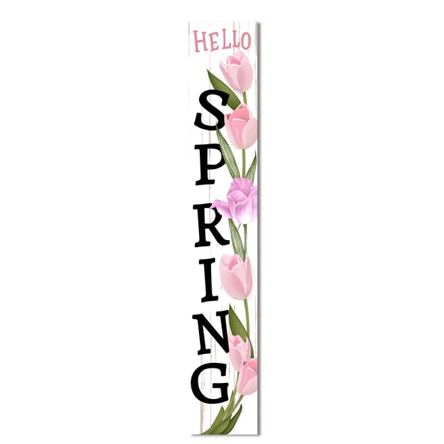 Lucidhisun Hello Spring Pink Tulip Porch Board Sign and Porch Leaner for Front Door Porch Deck Patio or Wall - Outdoor Spring & Summer Farmhouse