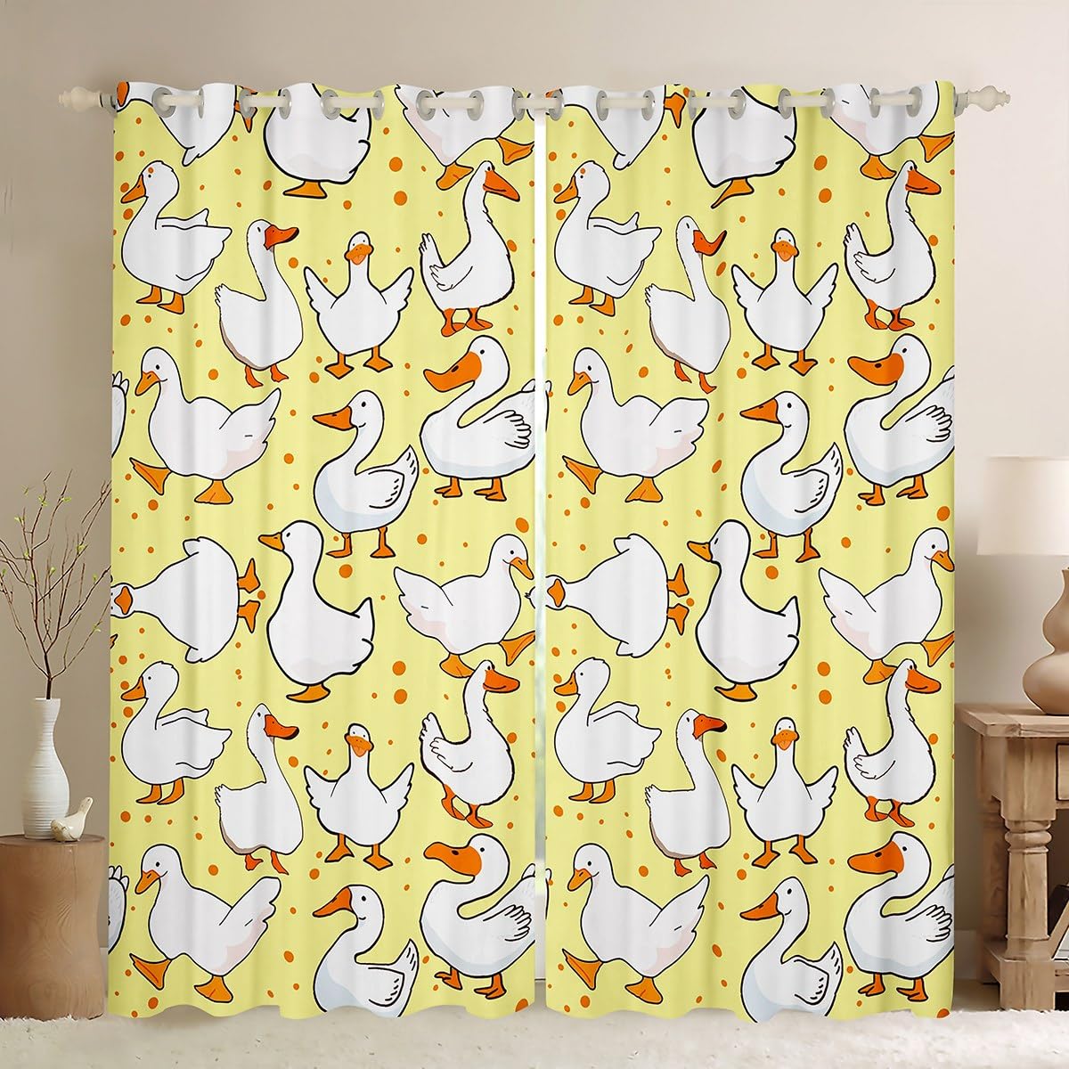 Cartoon Goose Blackout Curtains,Lovely Duck Funny Sketch Yellow Kitchen Window Treatments,Cute Farmhouse Livestock Animal Window Drapes for Home Decor