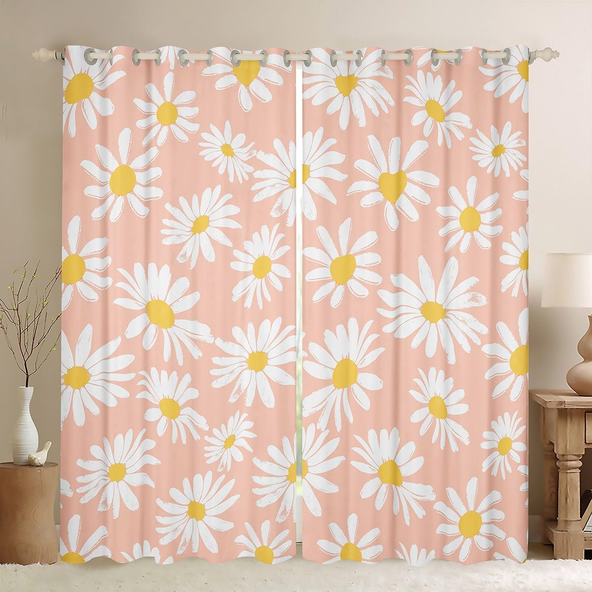 Flowers Curtains,Pink Daisy Window Curtains for Boys Girls Teens,Botanical Floral Window Treatment Curtains Home Decor,Garden Theme Window Drapes for