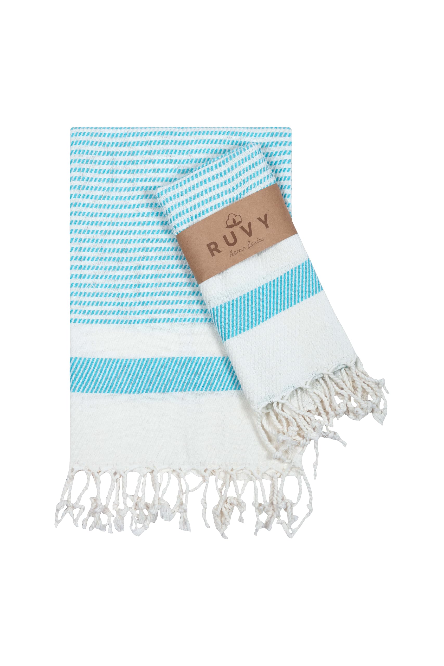 SIZE & MATERIAL : Our hand towel set includes 2 x hand towels. The size of our kitchen / bathroom hand towels is |16x40 inches| and weight is |4.3 oz (125 grams)|. Ruvy Home Basics Turkish hand towels set is prewashed that means will not shrink after your washes. Kitchen hand towel set is naturally