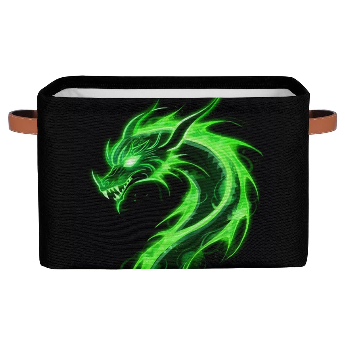 Green Dragon Storage Basket for Shelves, Closet Storage Bins with Handles, Decorative Collapsible Baskets for Organizing Toys, Clothes, Nursery, Home,
