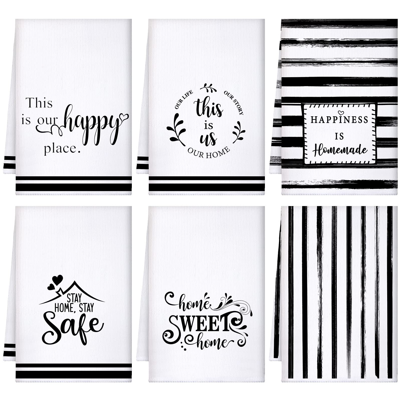 Novelty Design: home kitchen towel in 6 different styles, this is us, family, happiness homemade,this is our happy place, and more, these towels are ideal for lovers or newlyweds kitchen Functional Size: buffalo plaid dish towels are a practical size, measuring approximately 16 x 24 inches/40 x 60 c
