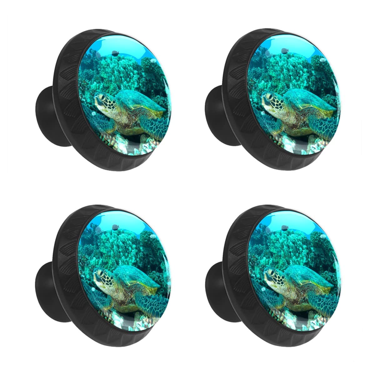 4 Pcs Cabinet Drawer Knobs Hawaiian Green Sea Turtle Underwater Decorative Round Crystal Glass Furniture Drawer Handles Dresser Cupboard Pulls with