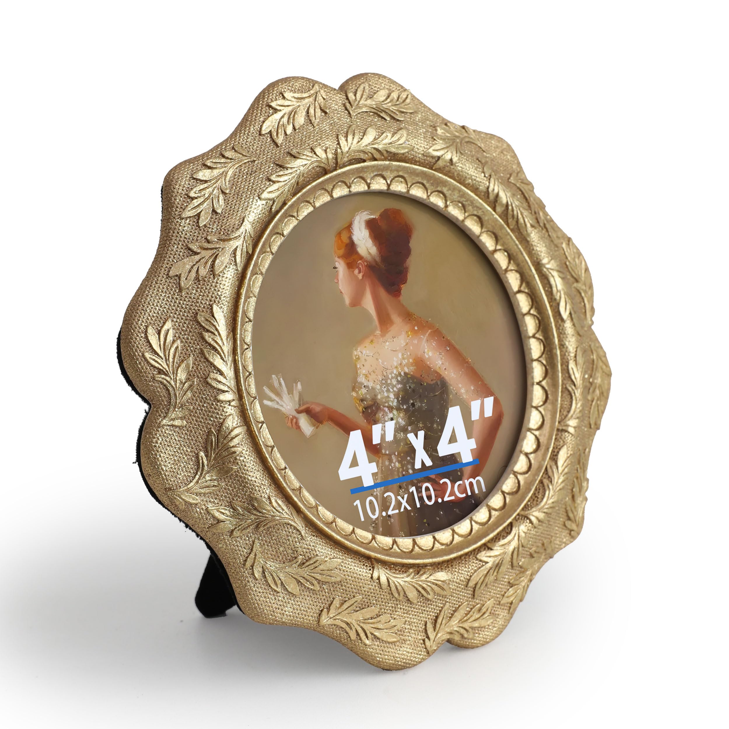 SoochART Vintage 4×4 Round Picture Frame, Real Glass, Suitable for Wall Mounting and Tabletop Display, Gold,Gift Idea