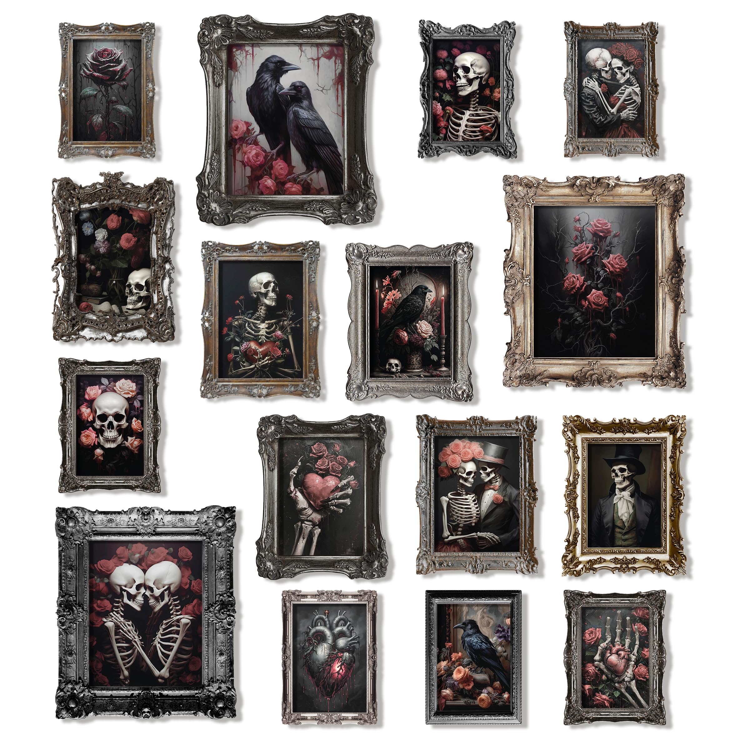97 Decor 16 Pcs Floral Gothic Decor for Home - Pink Skull Wall Decor, Goth Room Decor, Creepy Halloween Wall Decor, Spooky Art Prints Skull Pictures