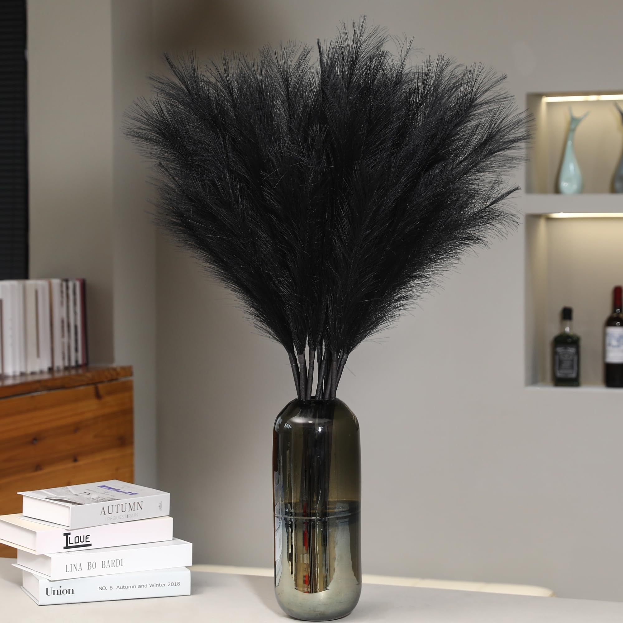 Wertuirk 9 Stems Black Pampas Grass - 38 Inch Tall Faux Pompous Grass Decor, Long Artificial Pompas Floral for Gothic Room Decoration, Wedding Flower