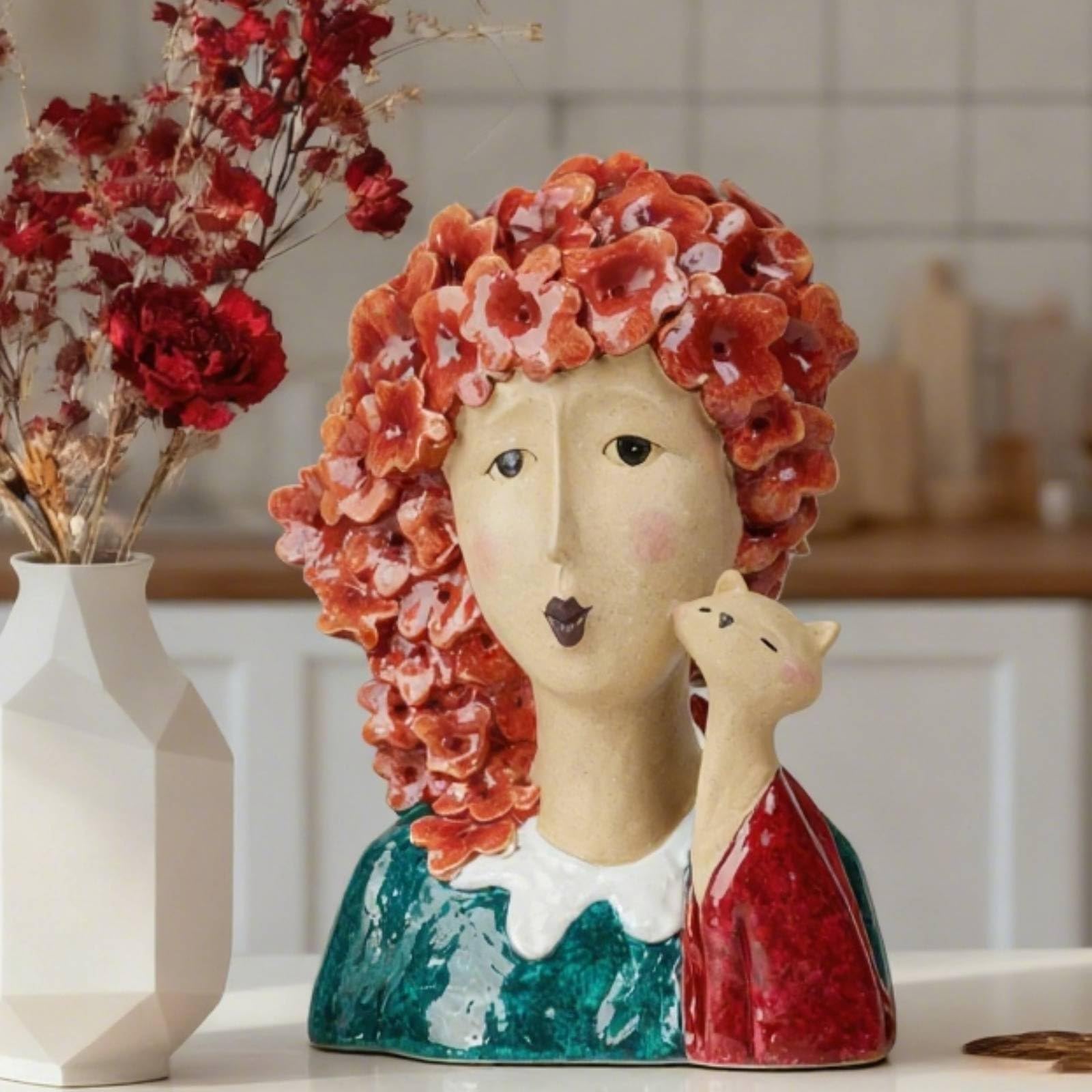 【WOMEN WITH CAT】Looking for a unique and entertaining way to spice up your home decor? Look no further! Our Women Head Statue with Cat modern design is the perfect addition to any room. Size: 9.5 x 7 x 13 Inch / Weight:3.9 lbs 【HOME DECOR ACCENT】This modern art statue features an adorable ca