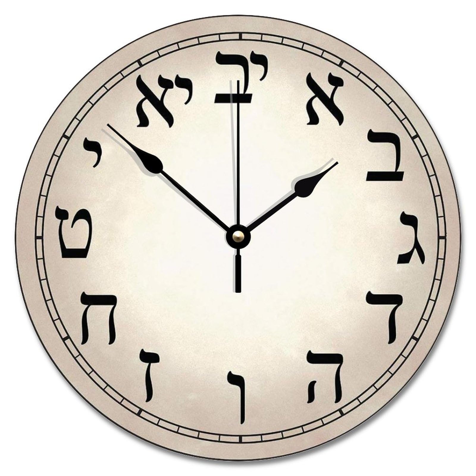 ArogGeld Hebrew Wall Clock Large Round Wood Clock 10 Silent Non-Ticking Quartz Battery Operated Clock for Living Room Kitchen Bedroom Farmhouse Home