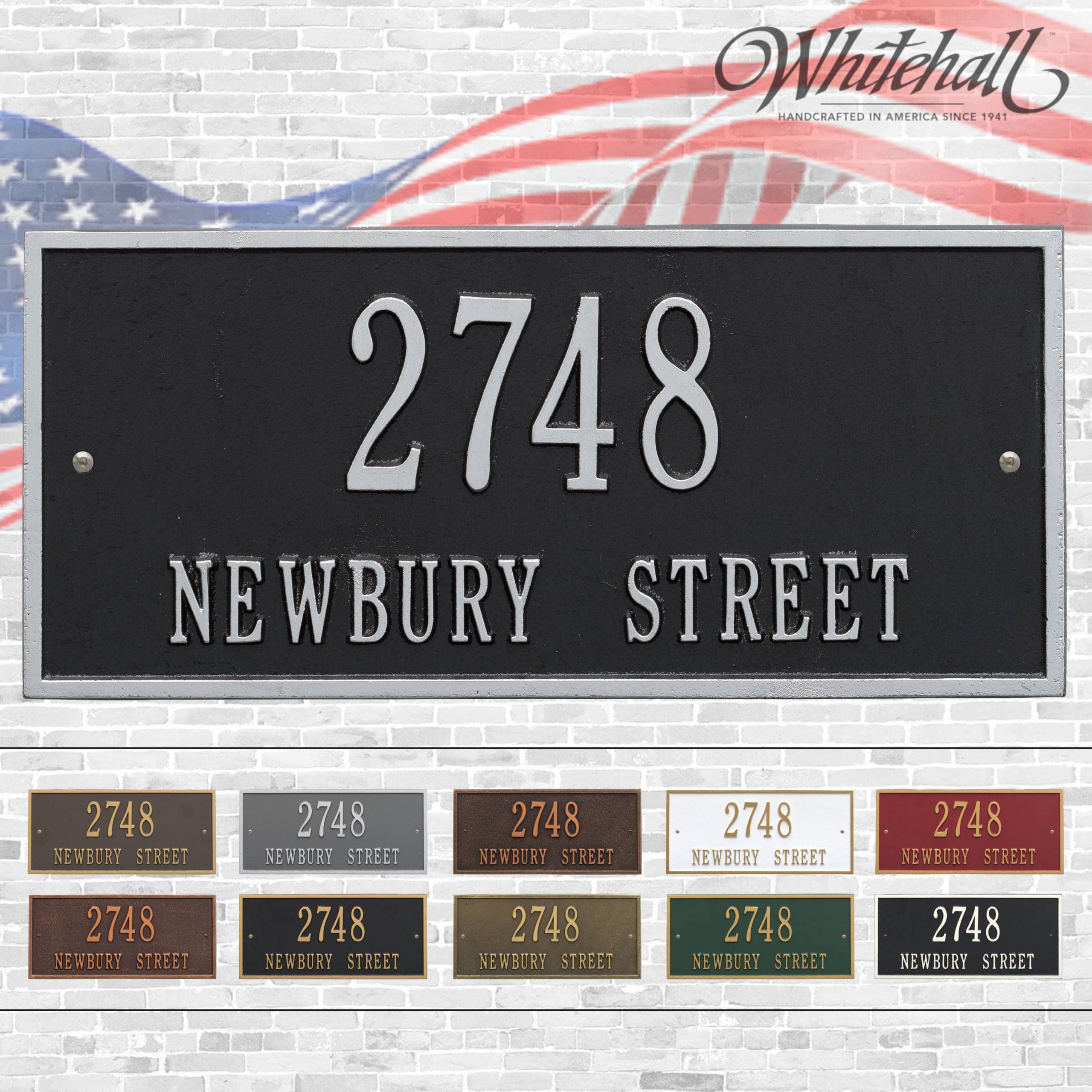 Whitehall Hartford Address Plaque – Personalized Cast Metal House Number Sign, Two Lines Wall Plate – Ideal for Home, Mailbox, Street, Driveway, &