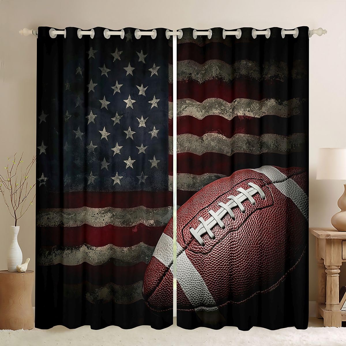 Erosebridal American Flag Window Curtains, Boys Football Curtains 38" Wx45 L, Soccer Sports Games Window Treatments United States Federations Stars