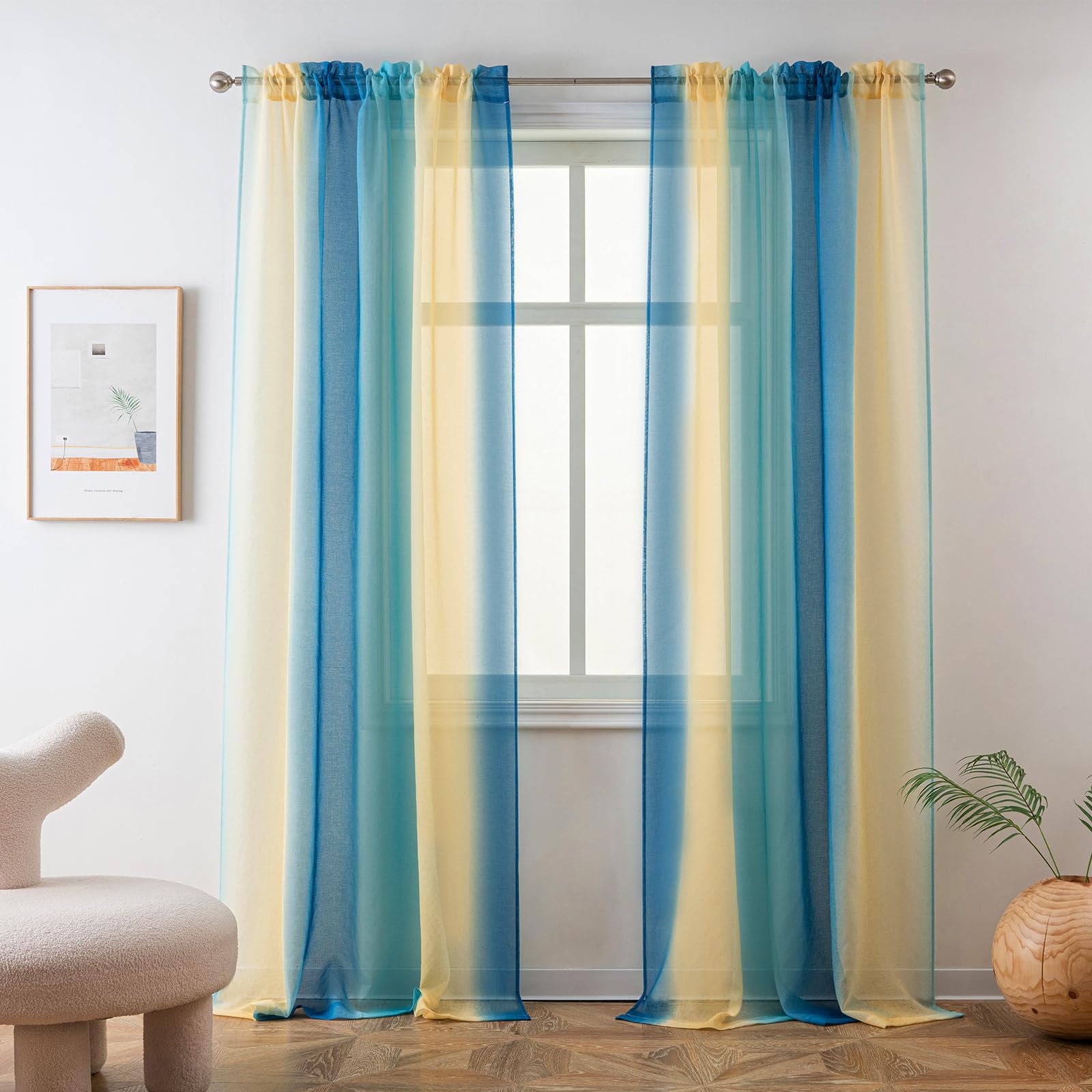 Yancorp Sheer Curtain 2 Panels Semi Bedroom Curtains 63 inches Length Linen Ombre Curtains Rod Pocket Drapes Girls Living Room Mermaid Bedroom Nursery