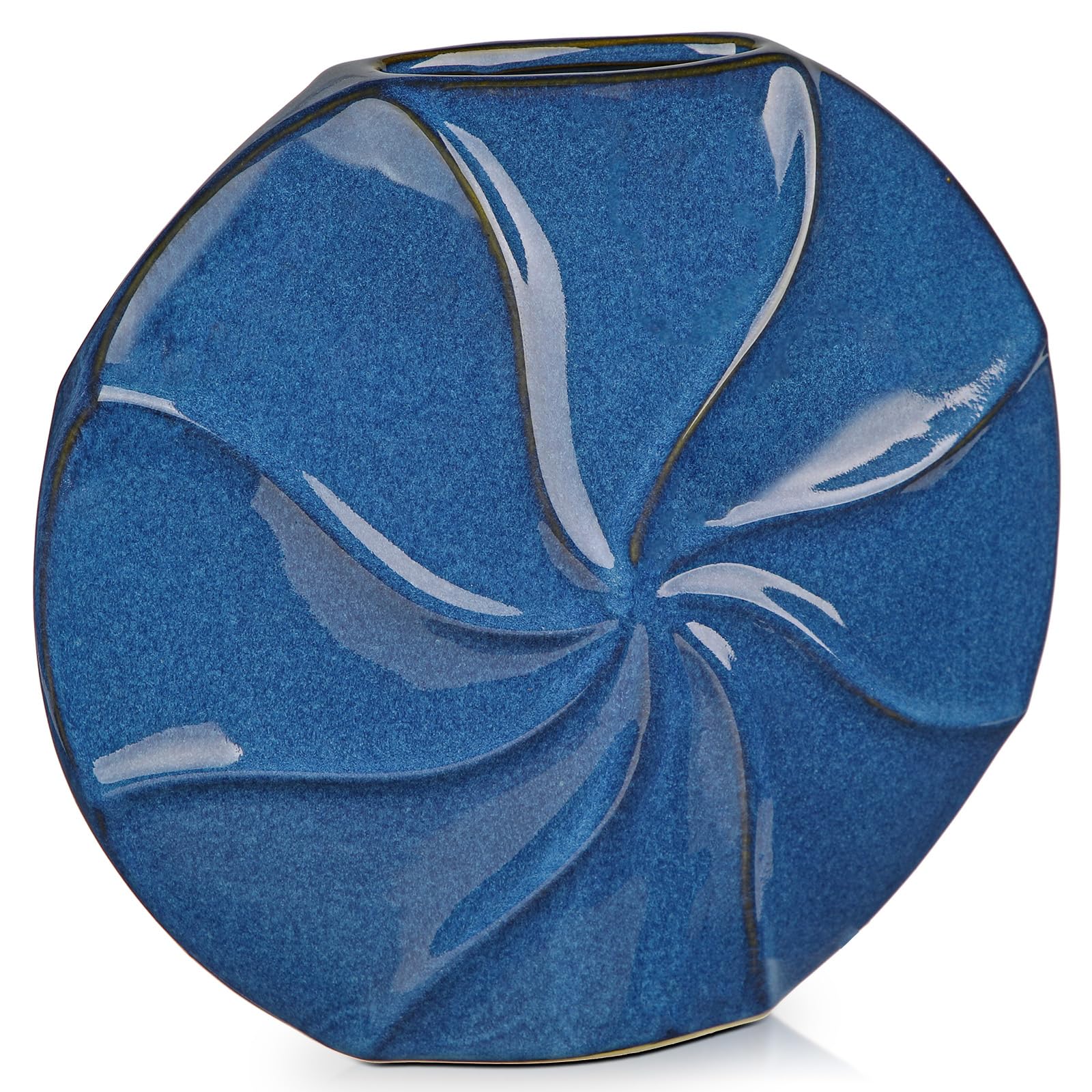ELEGANT CERAMIC VASE – MODERN & STYLISH: Elevate your home decor with this premium ceramic vase, featuring a unique sunburst texture with a hand-painted blue finish. Perfect for modern, rustic, boho, and contemporary interiors TWO SIZES AVAILABLE – VERSATILE DECORATIVE ACCENT: Choose between 11.