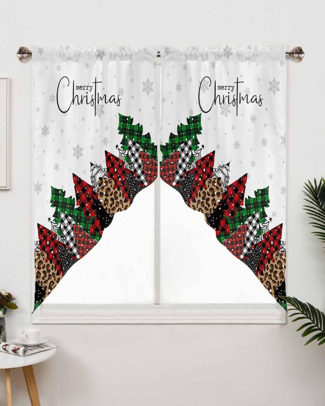 Merry Christmas Swag Curtain Valances,Lattice Leopard Xmas Tree Rod Pocket Kitchen Valance Short Swag Topper Curtains,Gray Snowflake on White Window
