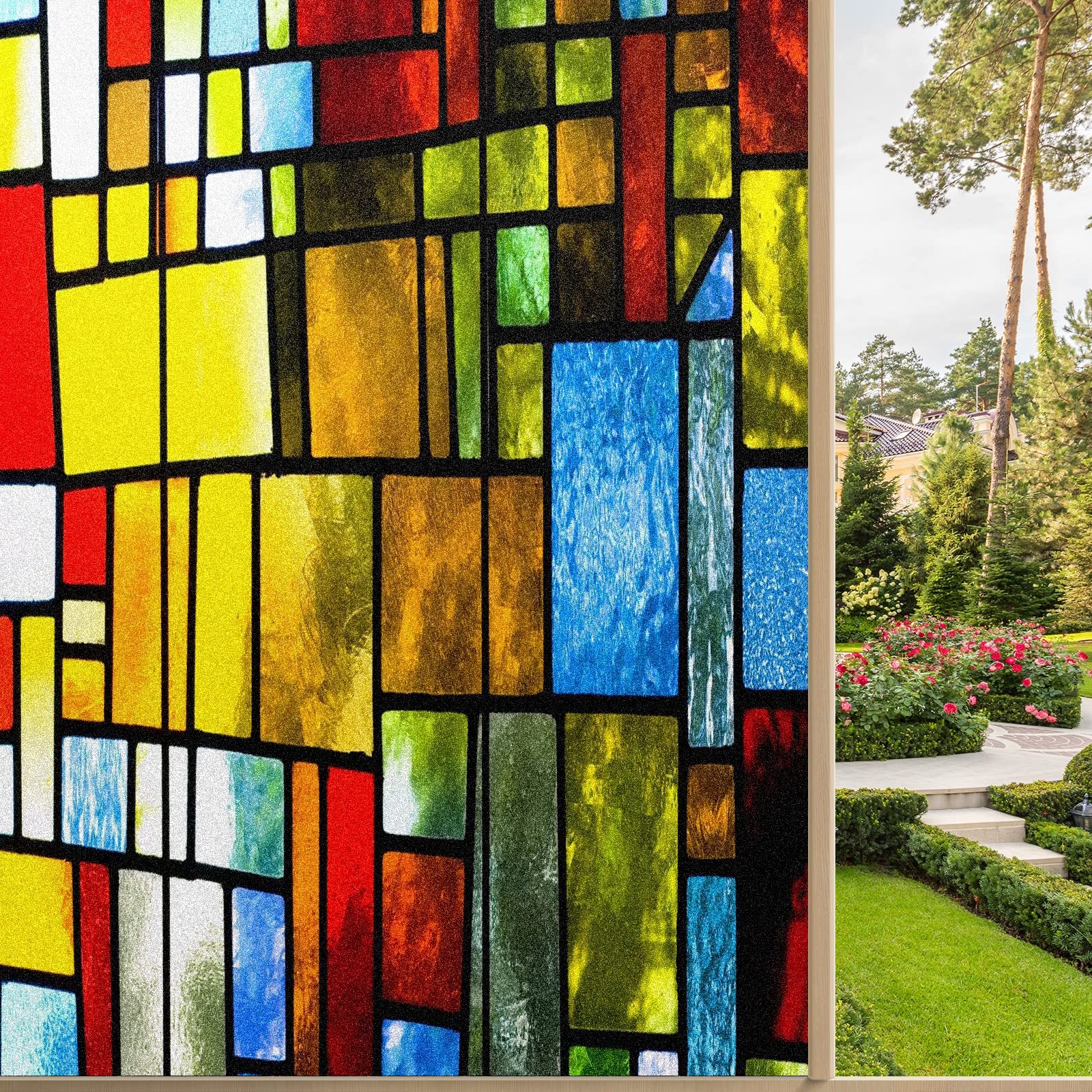 Privacy Film Decorative Vintage Stained Glass Texture Static Translucent Cling Window Decals Frosted Glass Clings Sticker Non-Adhesive Heat Control