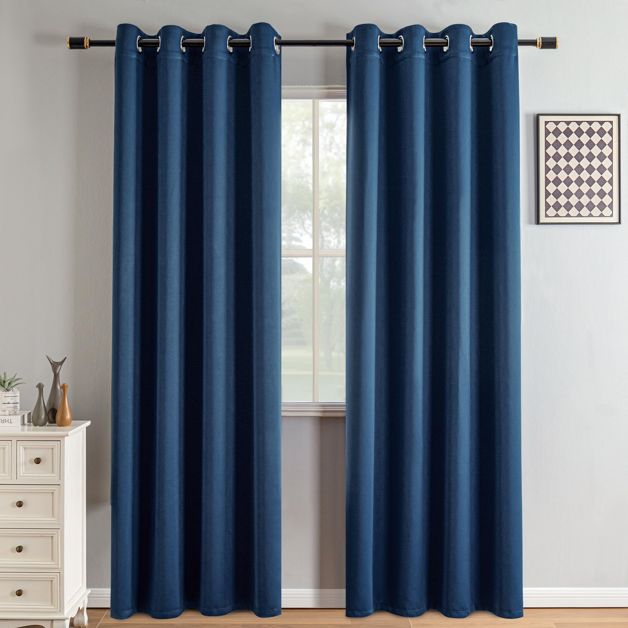 IGEMAEVE Blackout Curtains 90 Inch Length 2 Panels Set, Black Out Curtains for Bedroom 90 Inch Long, Grommet Energy Saving Room Darkening Drapes for