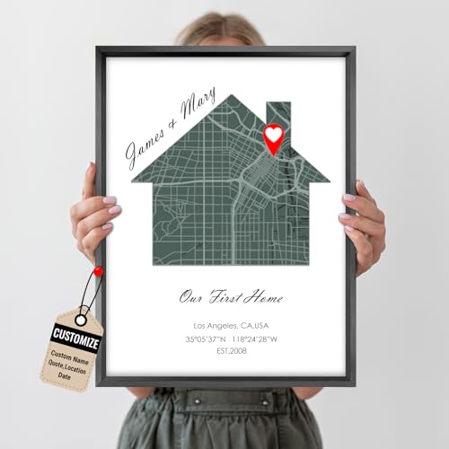 W WHEEL UP Our First Home Map Print, Personalized New House or Heart Shape, Custom Housewarming Gift for Home, Wedding, Anniversary, Valentine‘s Day (