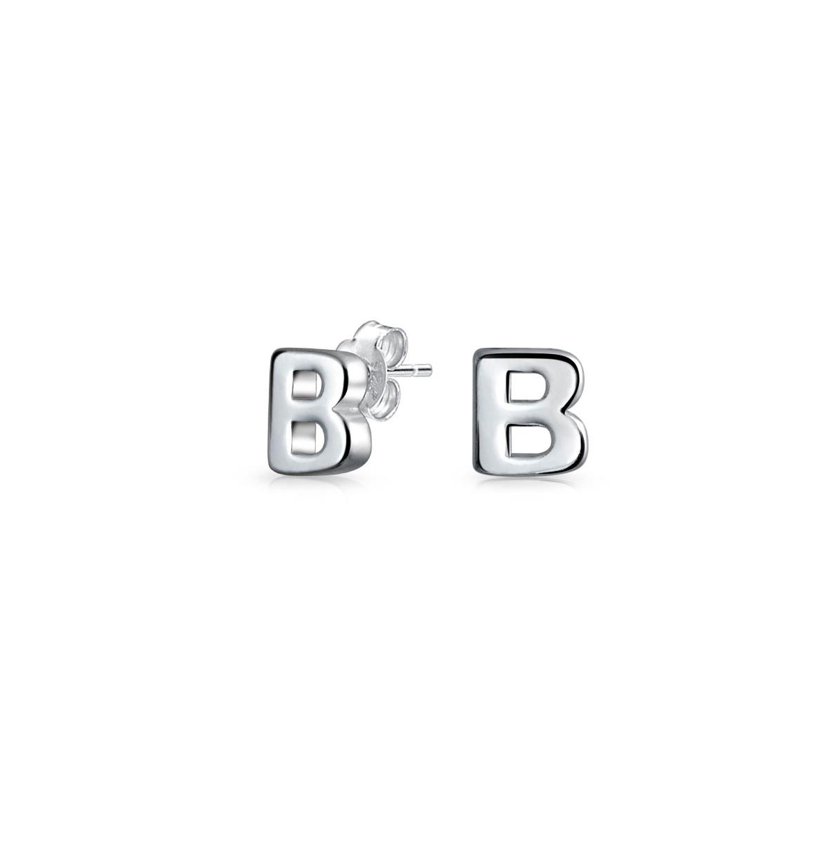 Bling Jewelry Abc Minimalist Geometric Capital Block Alphabet Letter Initial Stud Earrings .925 Sterling Silver - Silver b