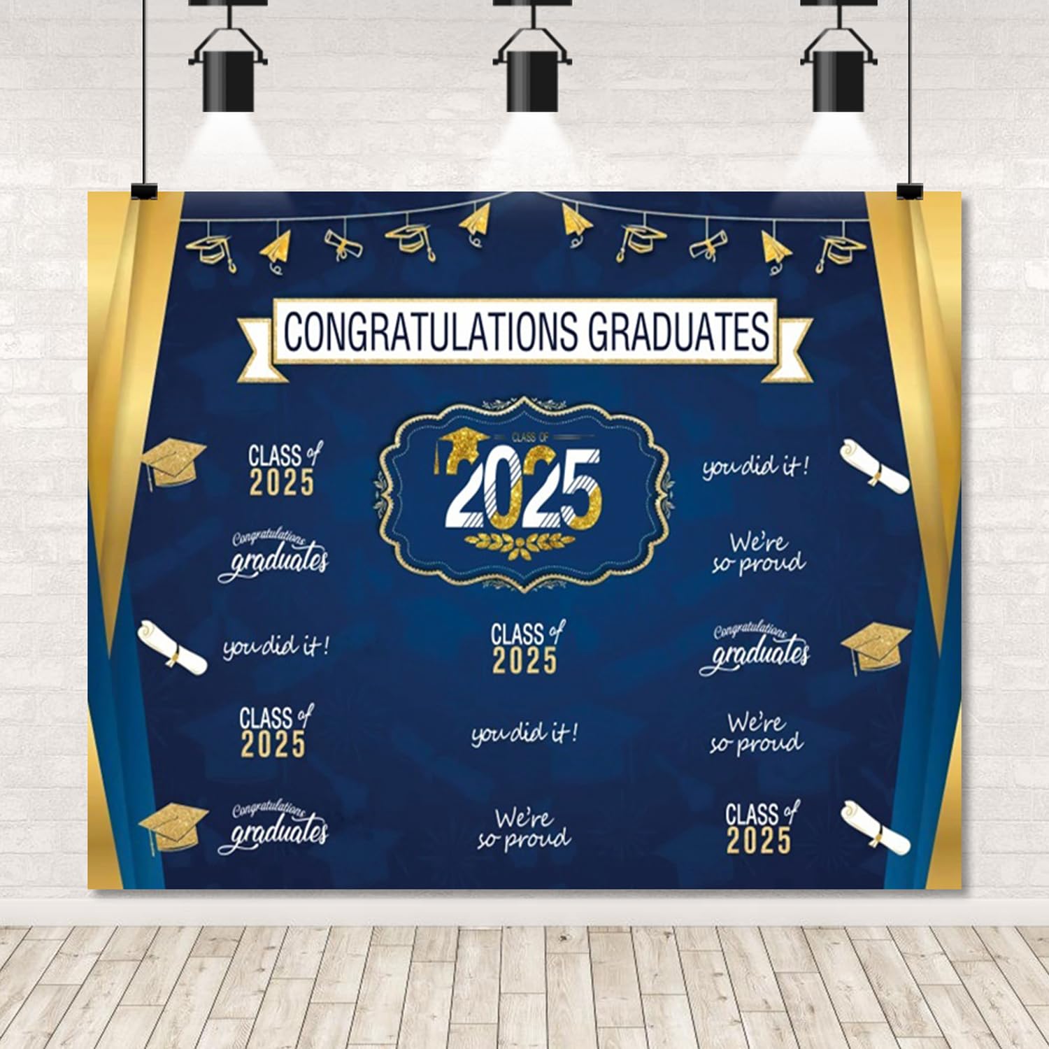Graduation Backdrop Class of 2025 10x8ft Blue Gold Congratulations Congrats Grad Photography Background Celebration Graduation Prom Party Decorations