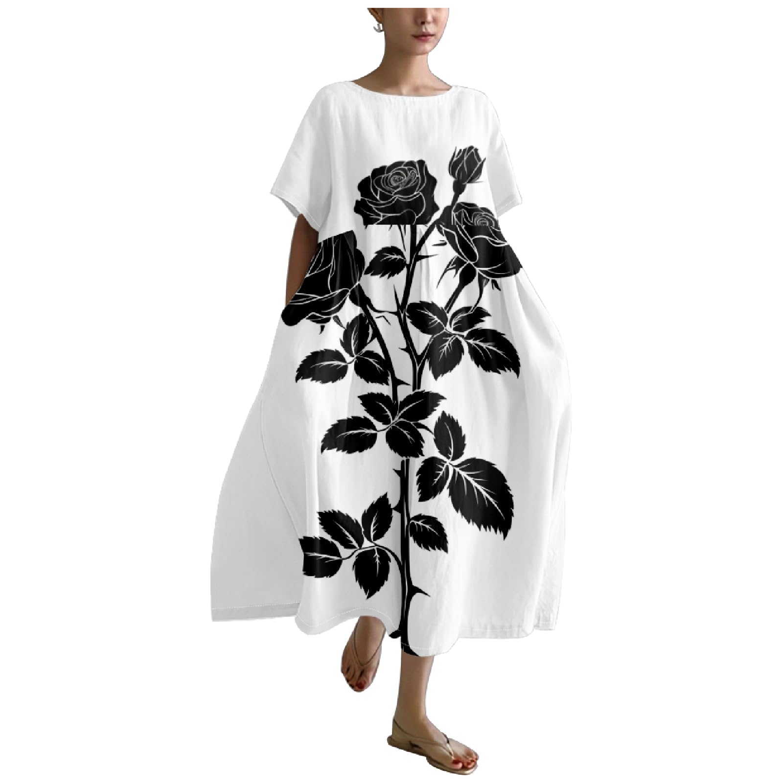 MARSVOVO Summer Casual Dresses Boho Floral Print Short Sleeve Loose Crew Neck Plus Size Party Dresses for Curvy Women