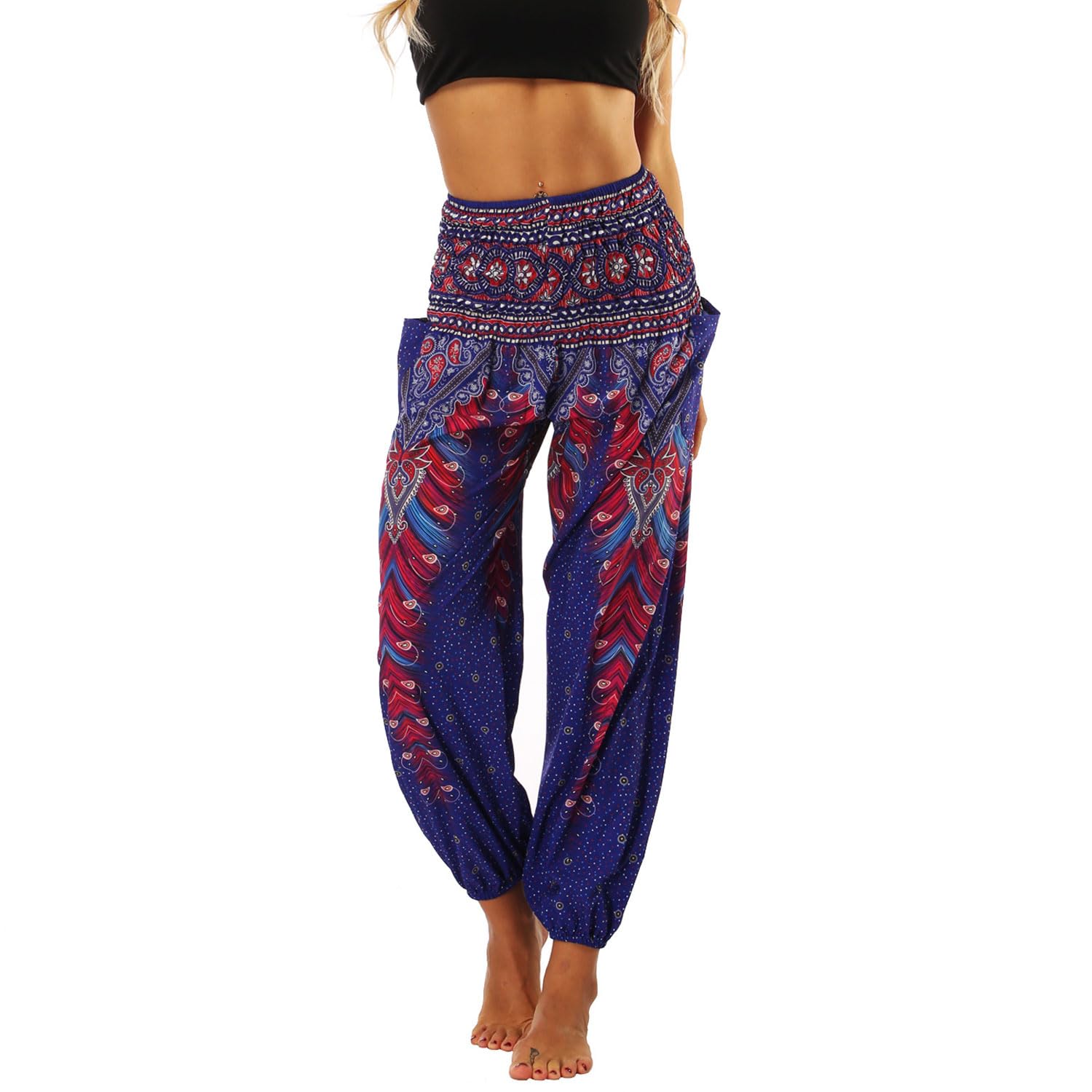 Lu's Chic Women's Boho Pants Harem Smocked Waist Yoga Hippie Palazzo Summer Beach Pants