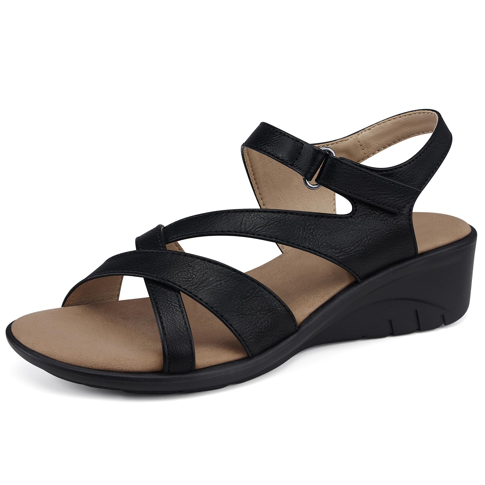 Low Wedge Sandals for Women: Designed with a low wedge heel and smooth PU leather straps, these wedge sandals offer all-day comfort for both indoor and outdoor wear. Easy to pair with capris, jeans, or dresses for everyday and casual occasions. Adjustable Sandals for Women: Featuring a convenient ho